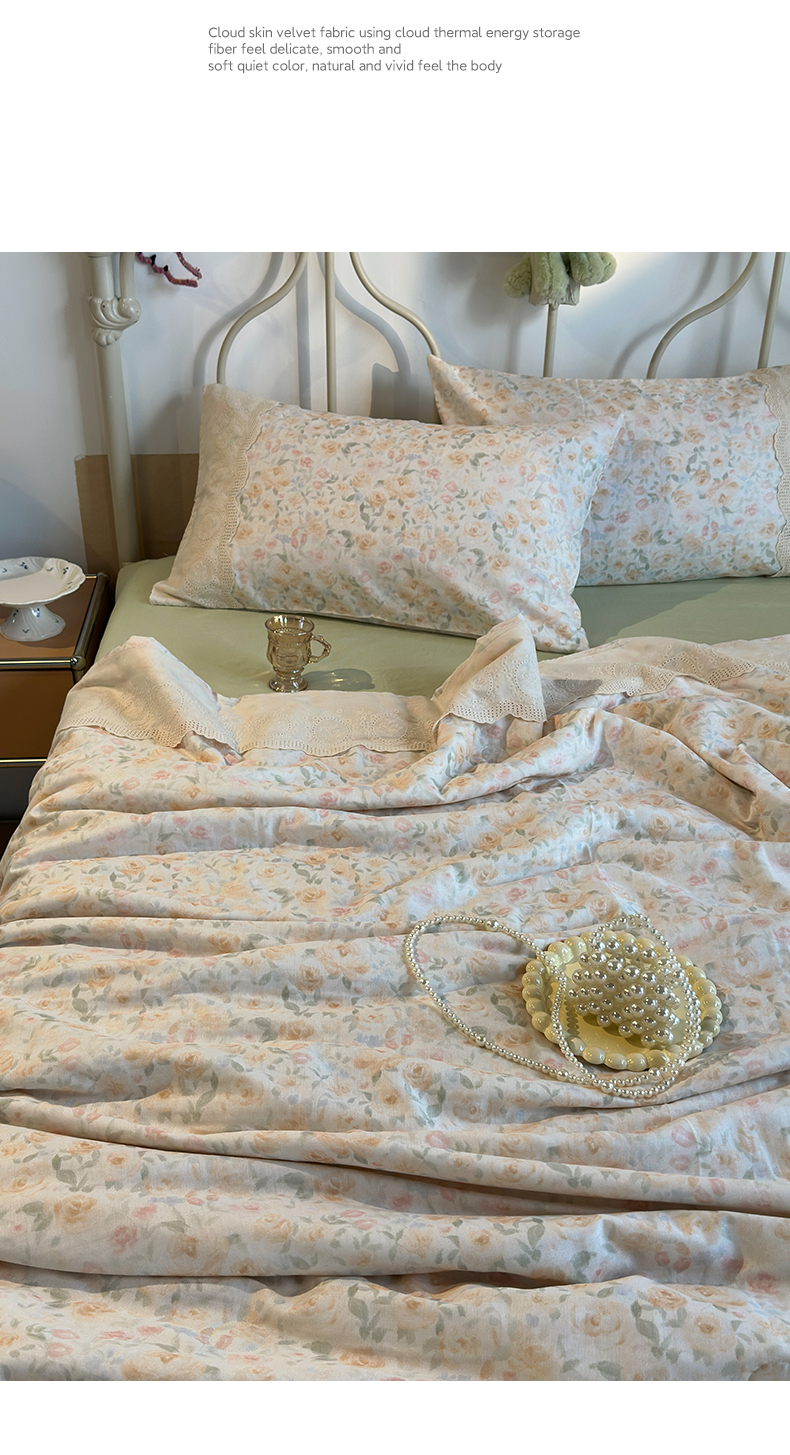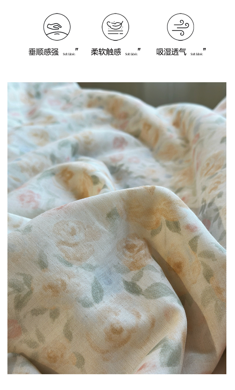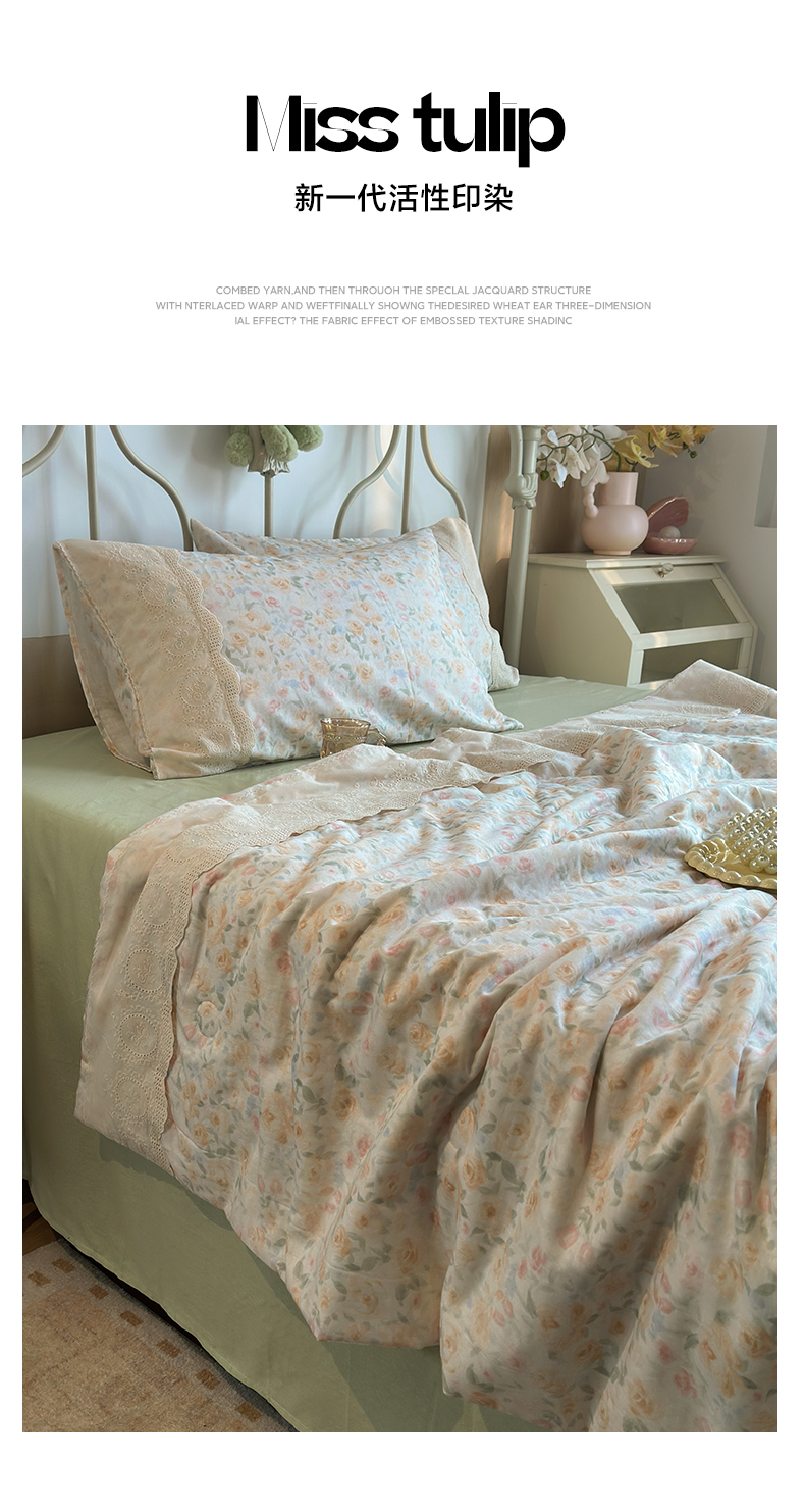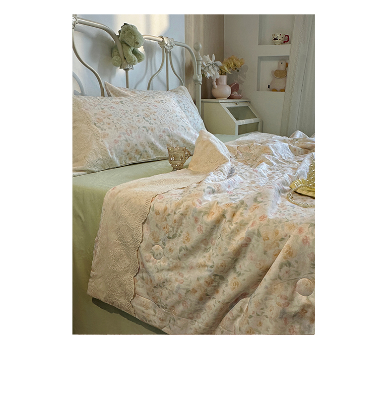 当前位置: 91家纺网 > 商品网购 > 床品套件 > 四件套 > 夏被四件套 > 绫韵家纺 2026夏季新品A类全棉双层纱法式大花边夏被四件套 月朦胧·黄