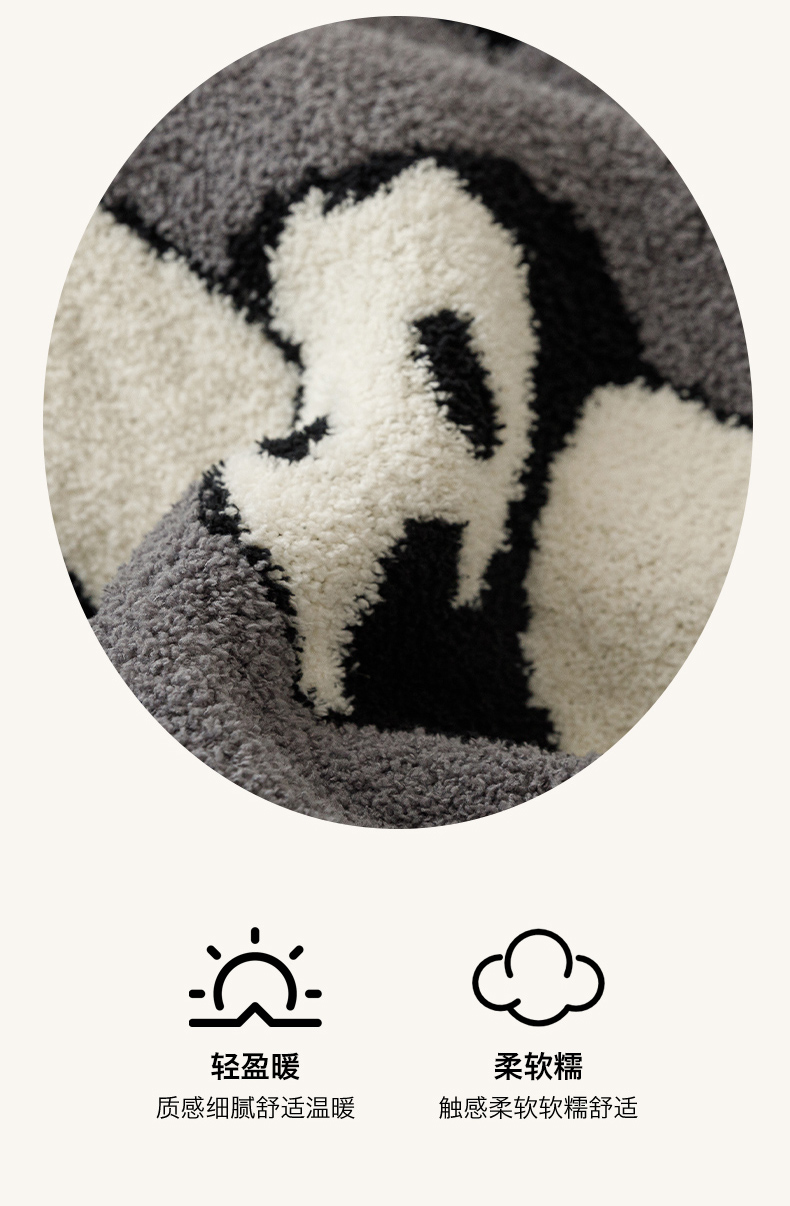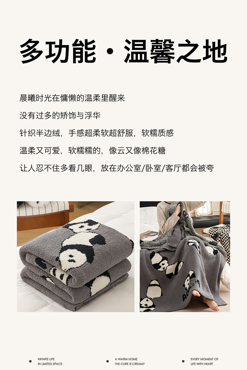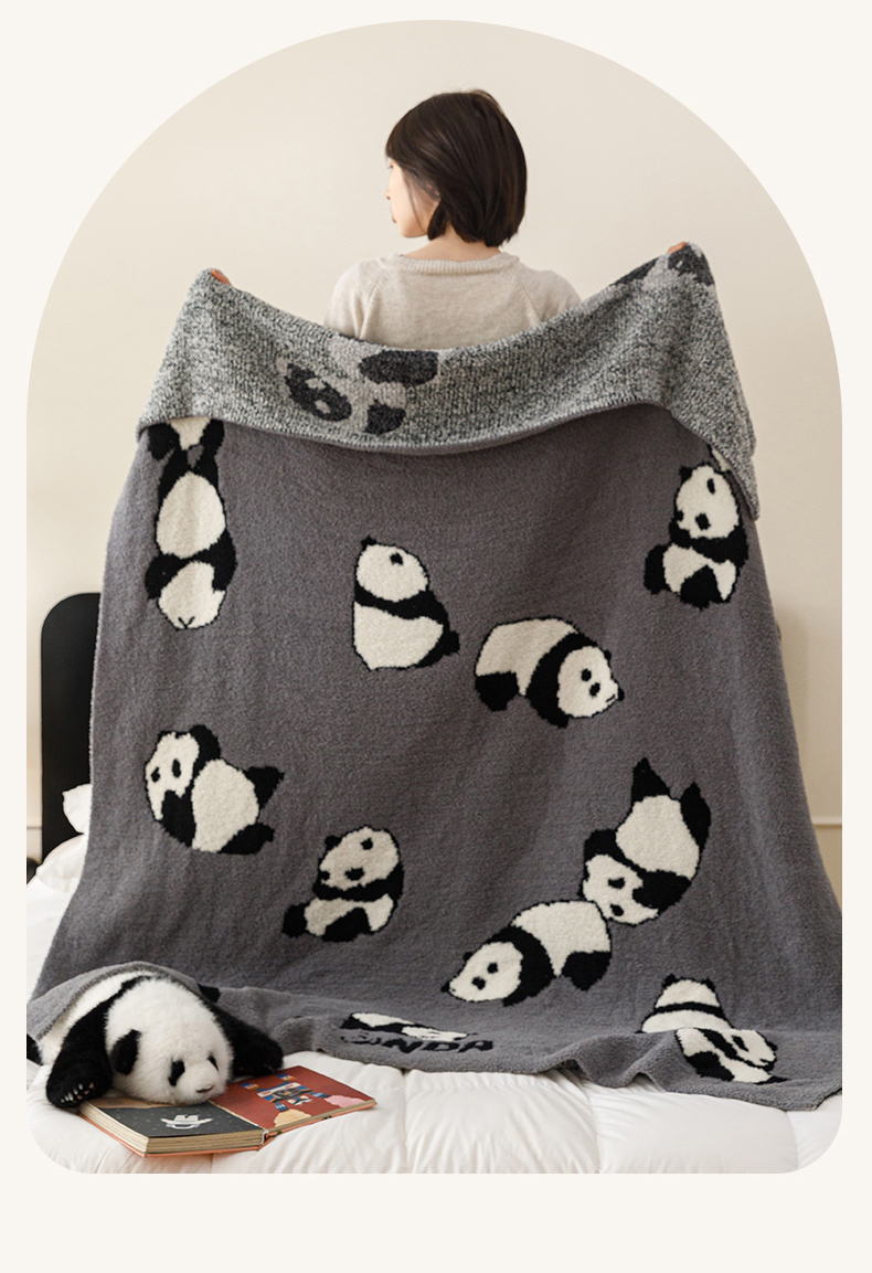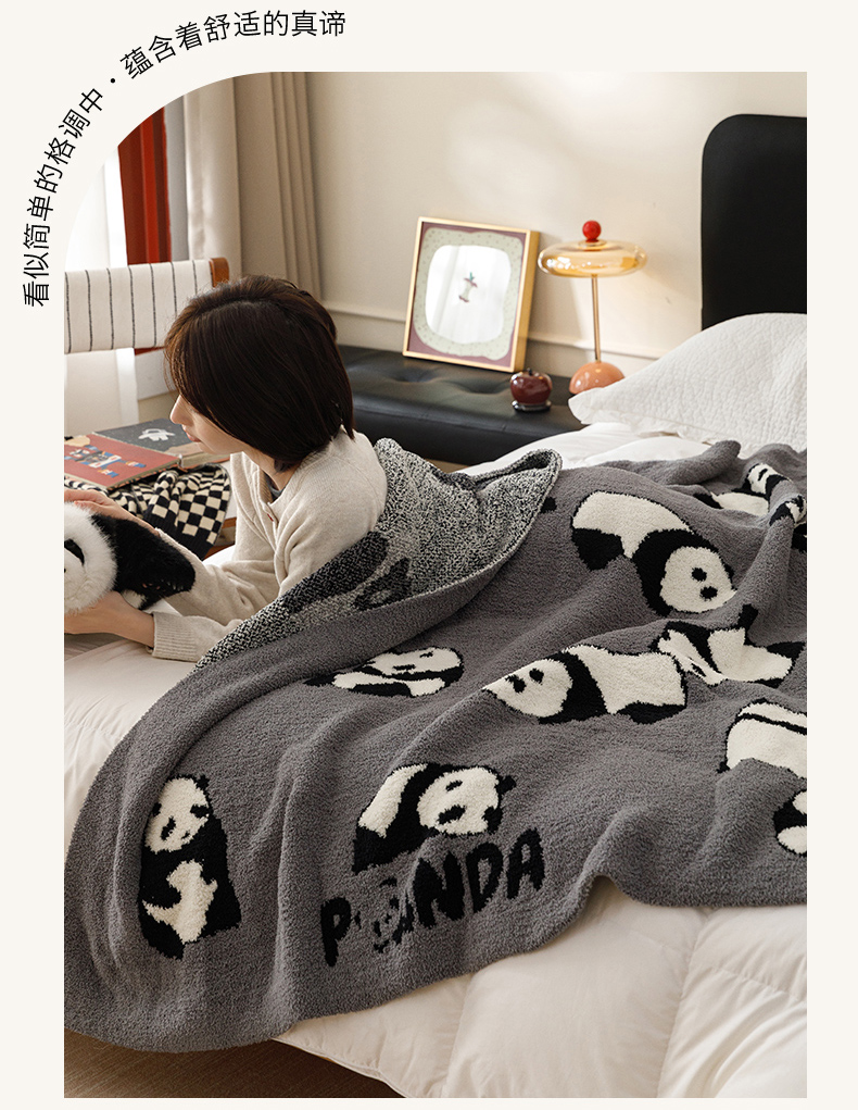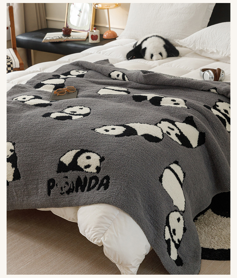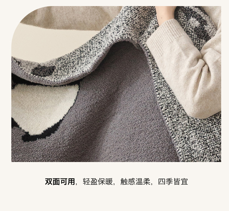 商品名称:瑞米家居 2026新款多功能半边绒盖毯毛毯毯子 熊猫-灰