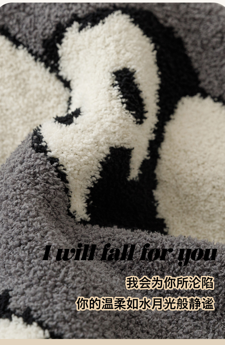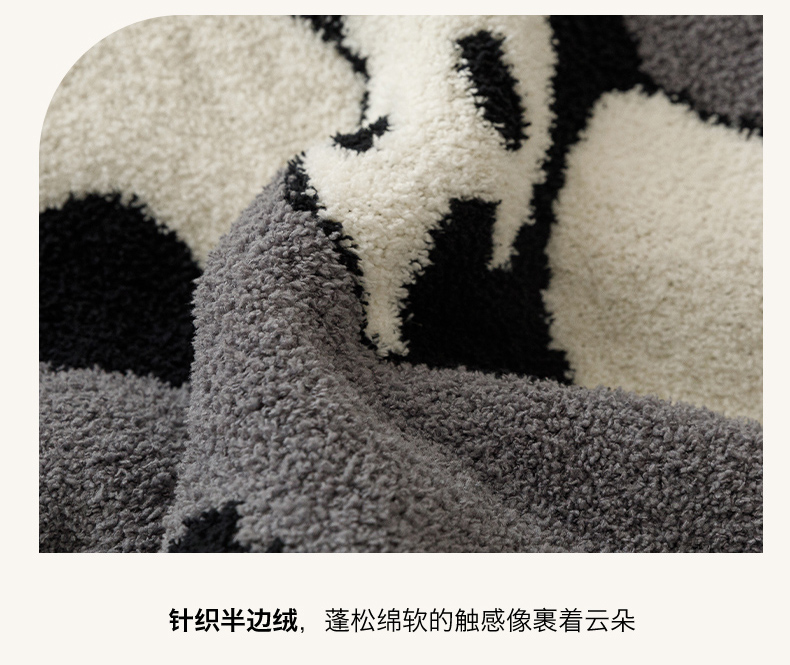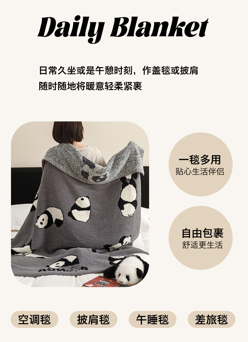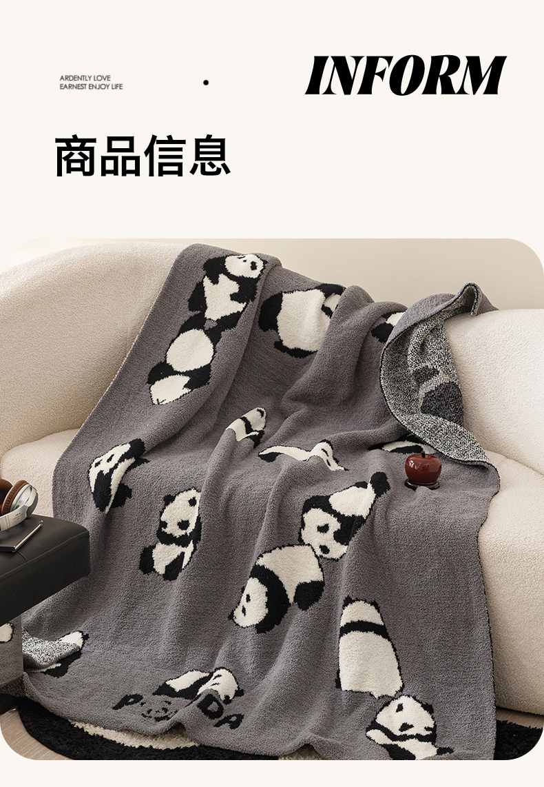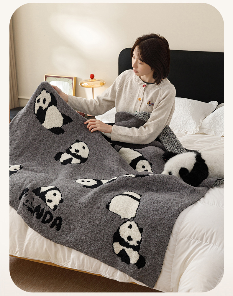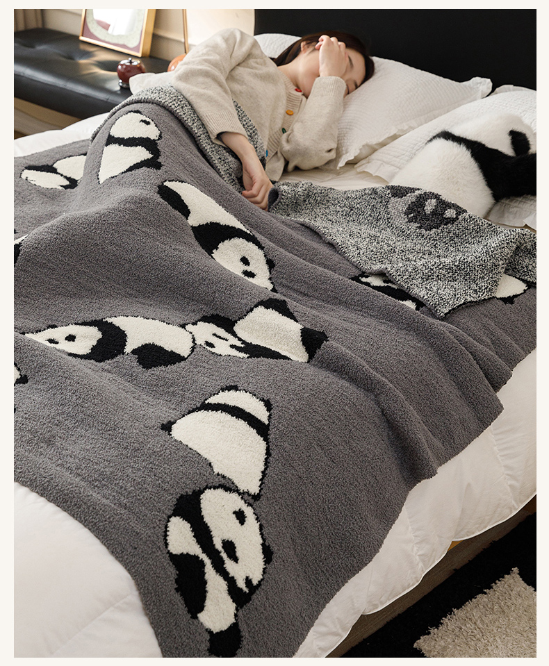 商品名称:瑞米家居 2026新款多功能半边绒盖毯毛毯毯子 熊猫-灰