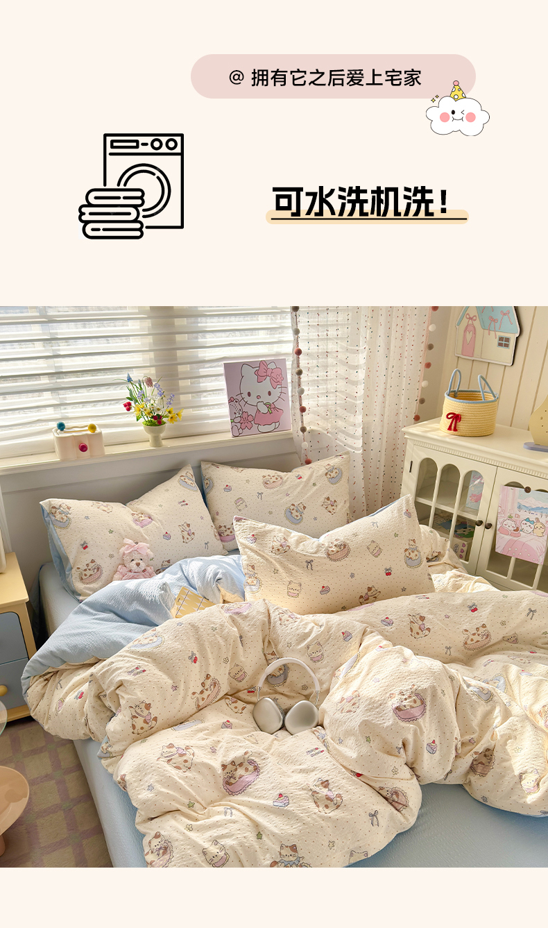 当前位置: 91家纺网 > 商品网购 > 床品套件 > 四件套 > 双层纱四件套 > 优承佳生活馆 2026新款卡通小清新风格高克重超柔软糯泡芙双层纱面料三件套四件套单被套系列 (提供买家秀) 甜猫派对