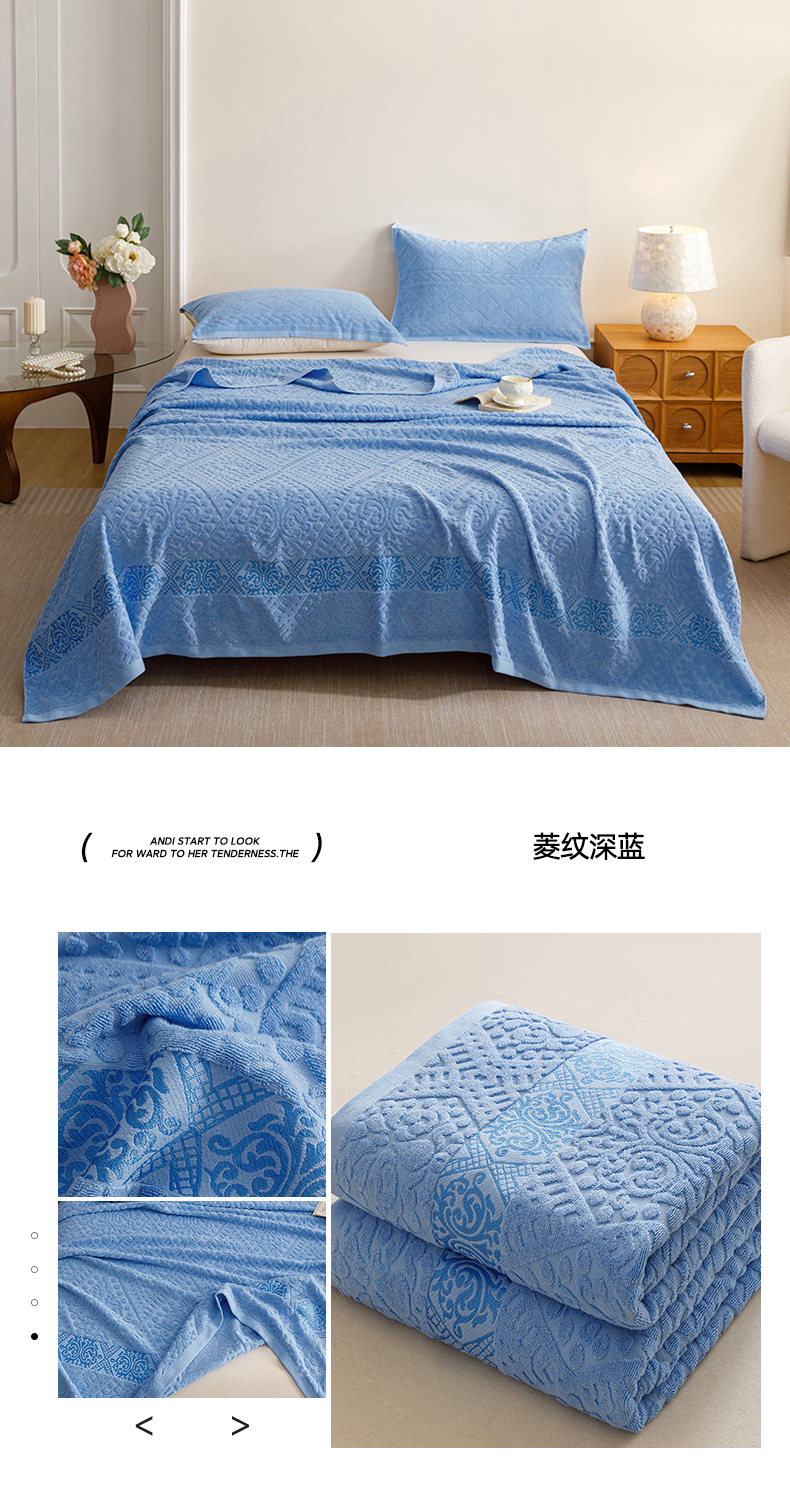 悦然毛巾被 2026春夏新款全棉老式毛巾被夏凉被夏被 菱纹深蓝