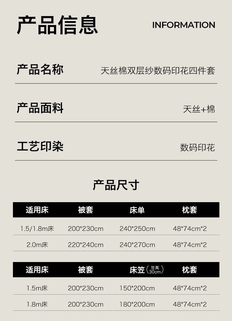 【床笠款】1.8四件套-被套220x240 | ¥190.00 |