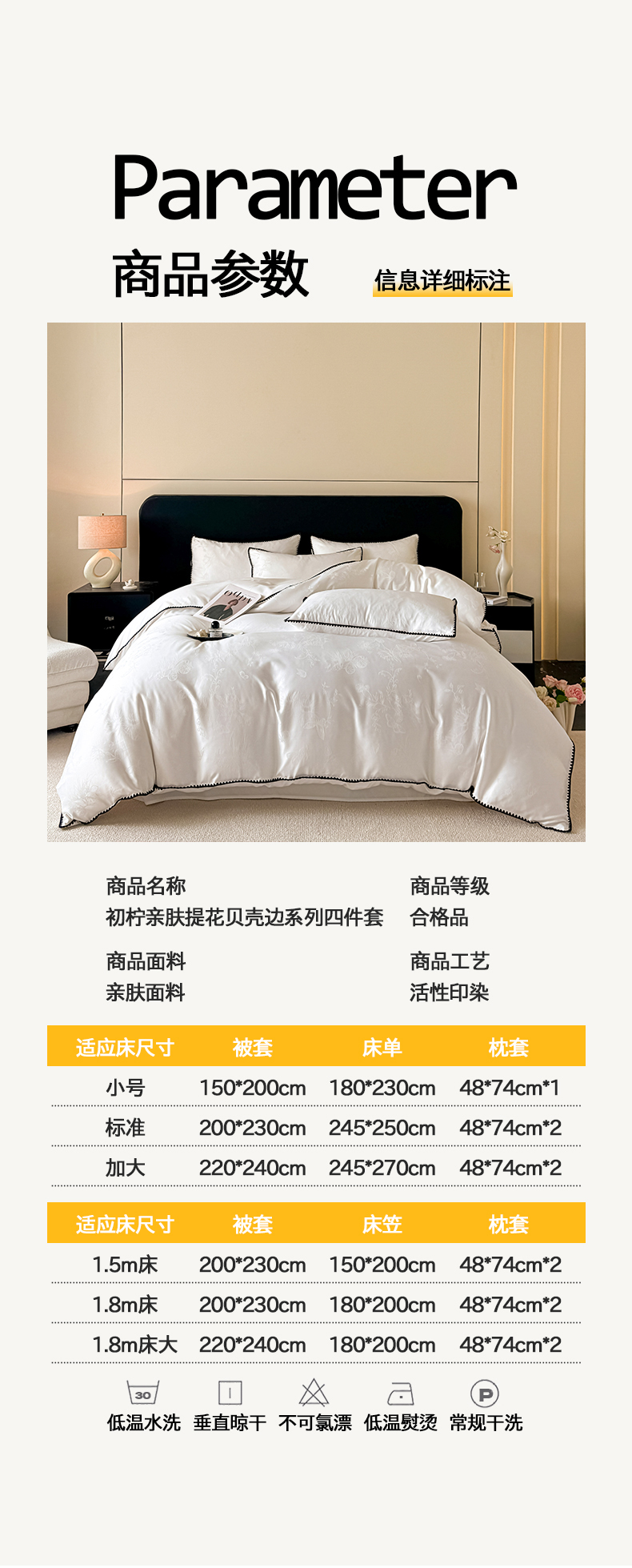 当前位置: 91家纺网 > 商品网购 > 床品套件 > 四件套 > 其它四件套 > 置顶家纺 2026新款亲肤提花贝壳边四件套-初柠 初柠-白色
