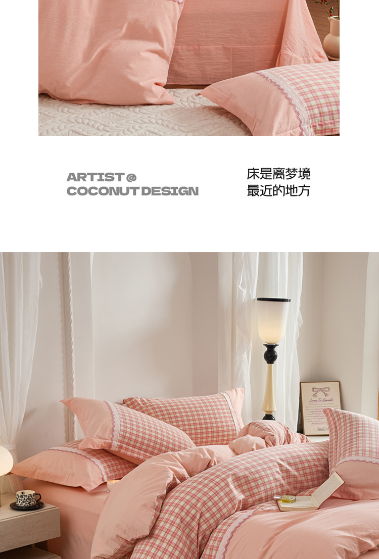 (总)喜四方 2026新款100%全棉纯棉色织水洗棉花边工艺款四件套-系列一,北辰,初恋-绿,春日,格恩,洛克,蜜糖-紫,墨尔本-咖,墨尔本-兰,宁静-兰,清禾-粉,恬梦,西西里,小欢喜-绿,小确幸-粉,小时光-紫,遇见-粉,遇见-绿