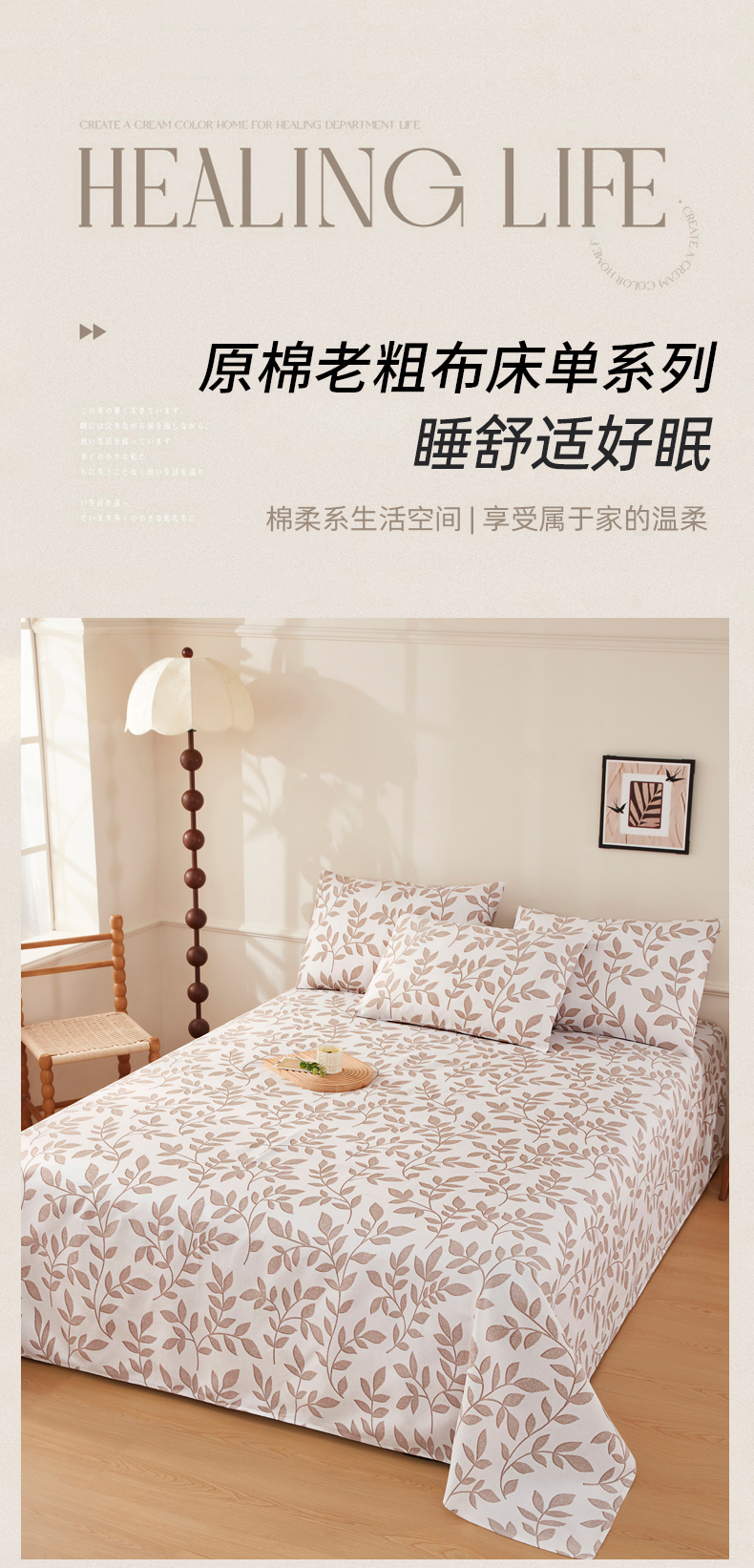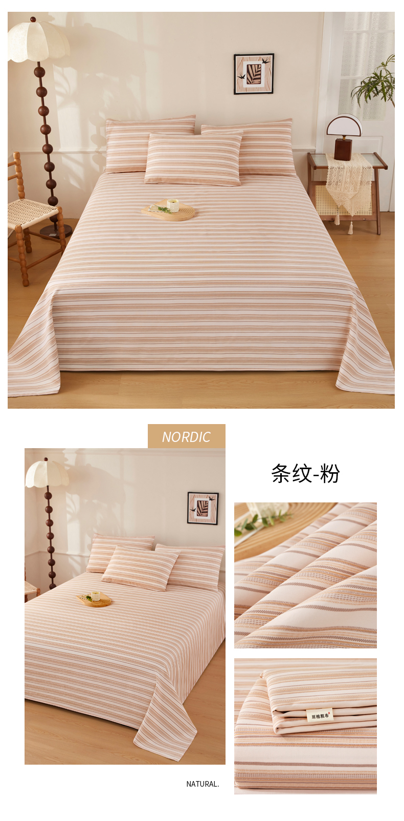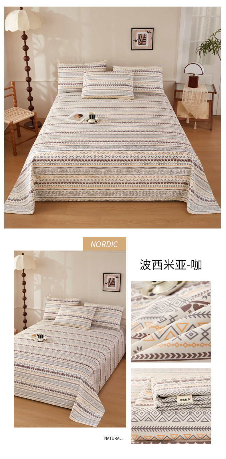 当前位置: 91家纺网 > 商品网购 > 床品套件 > 三件套 > 美丽折家纺 2026春夏新款原棉老粗布单床单床单单件床单三件套 知秋