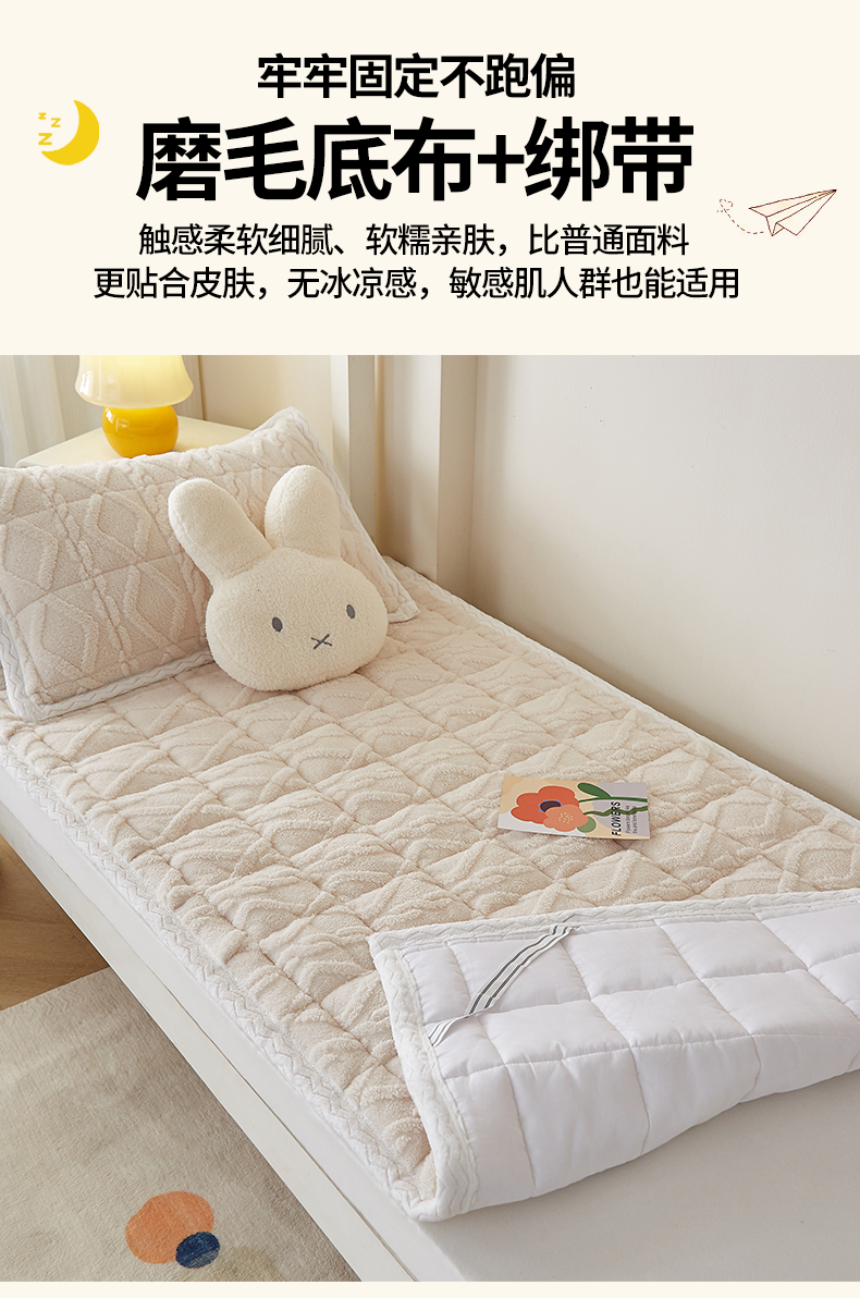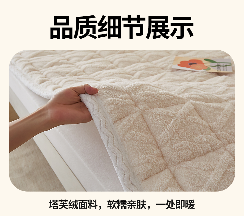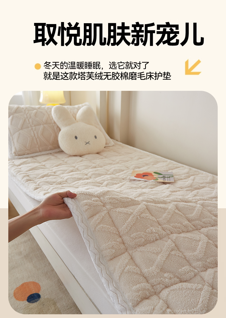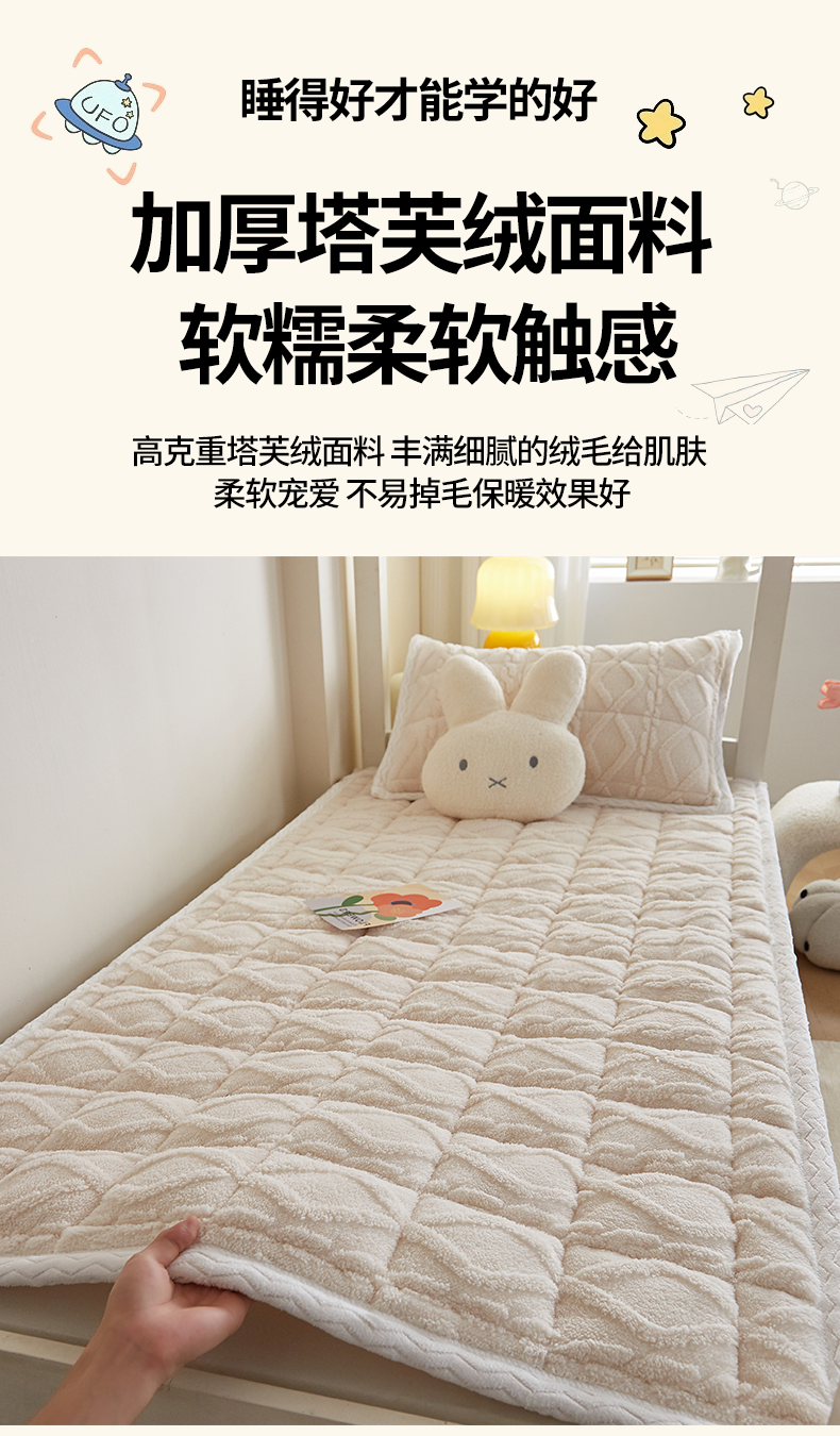当前位置: 91家纺网 > 商品网购 > 床垫/床褥 > 普通床垫 > 月茶家纺 2026新款塔芙绒无胶棉磨毛床护垫--学生款 奶油白