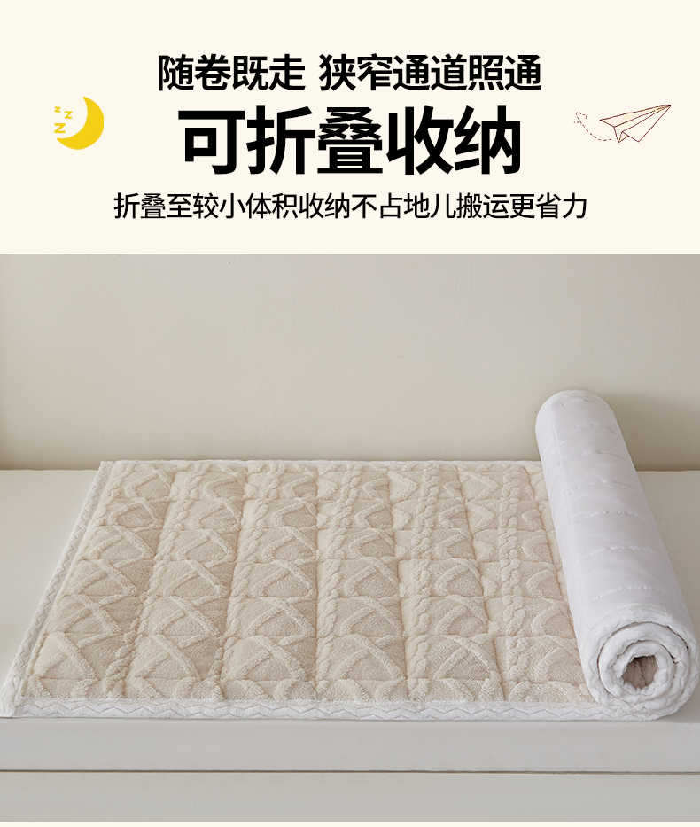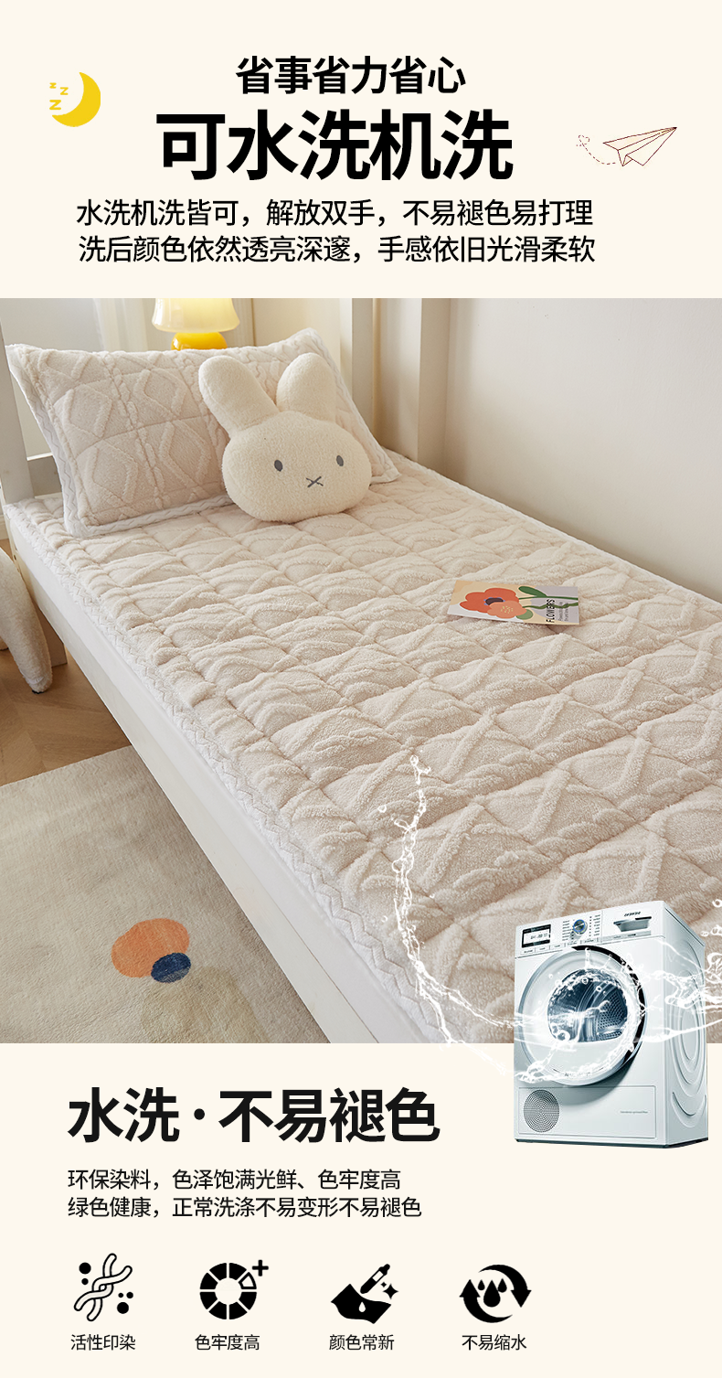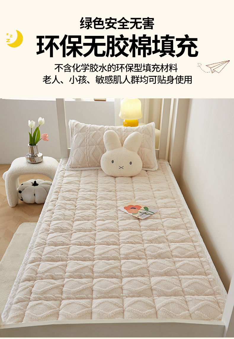 当前位置: 91家纺网 > 商品网购 > 床垫/床褥 > 普通床垫 > 月茶家纺 2026新款塔芙绒无胶棉磨毛床护垫--学生款 奶油白
