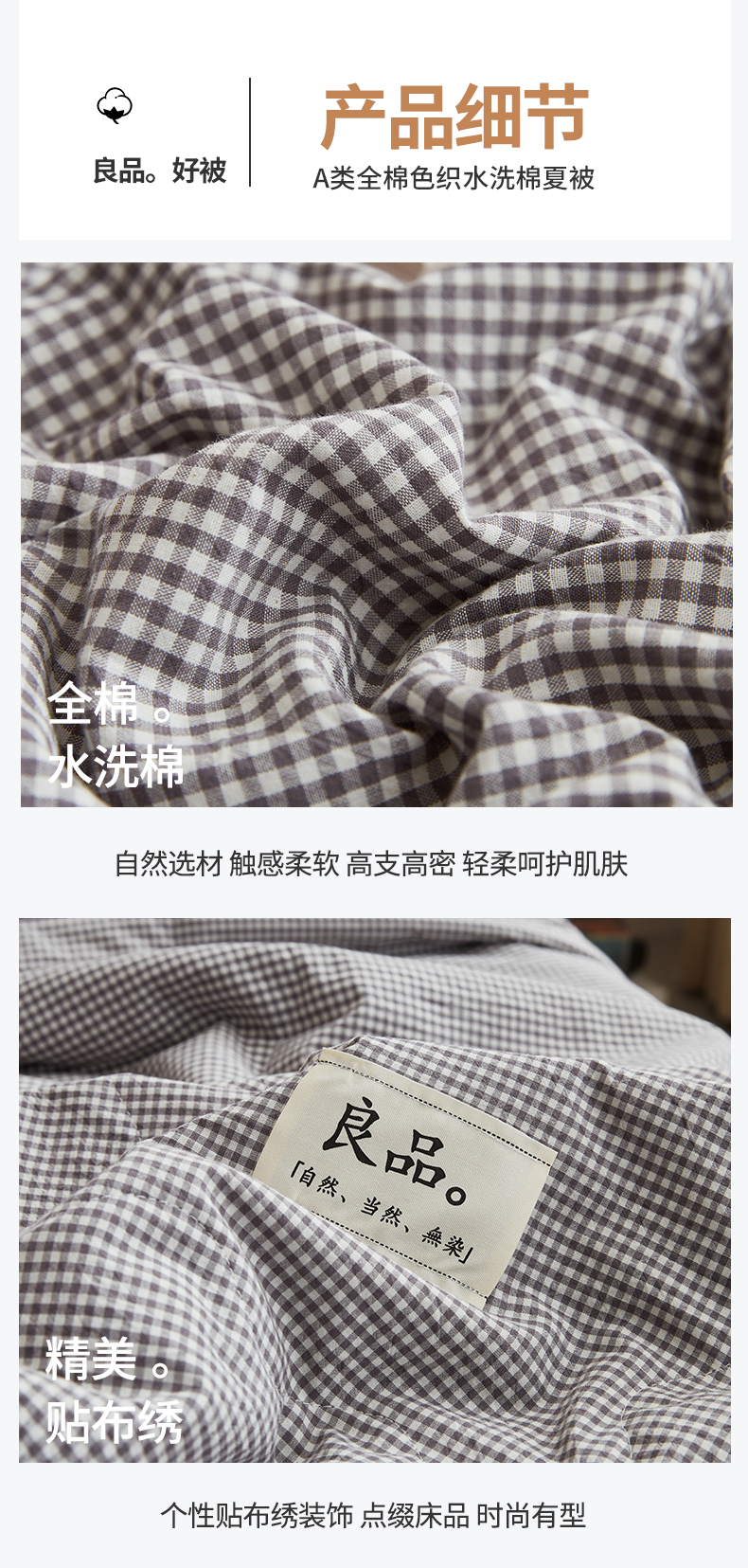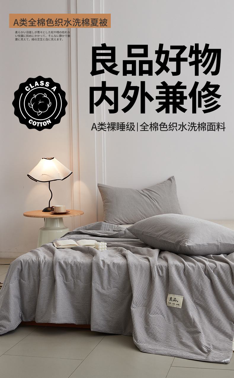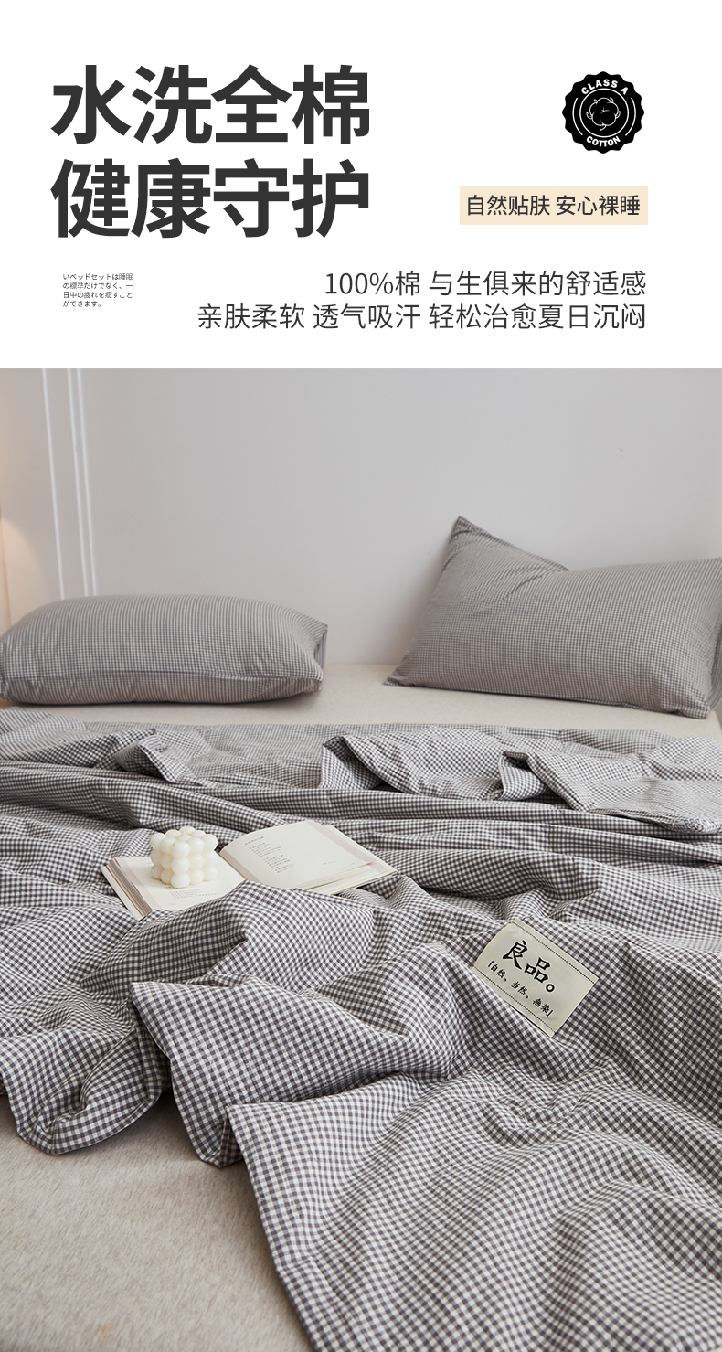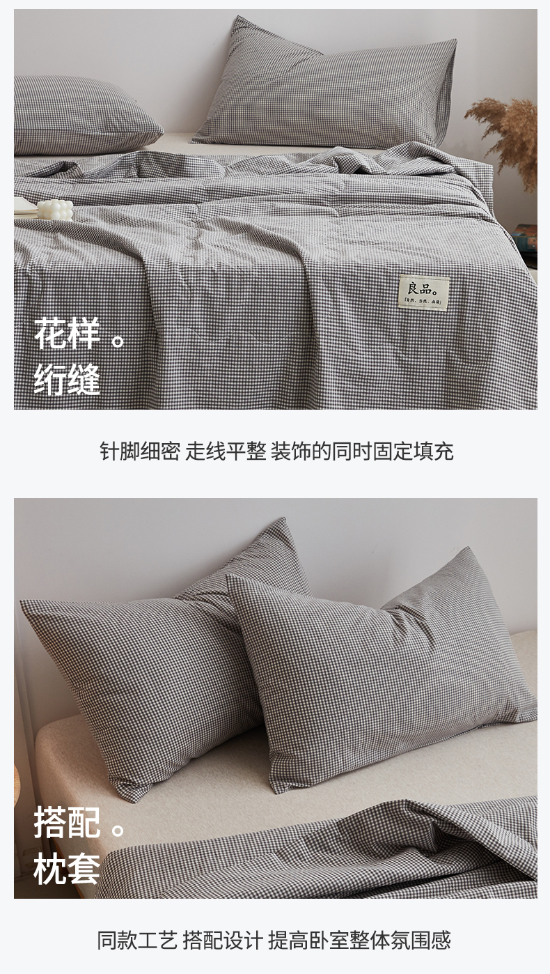 尊妙被业 2026新款全棉色织水洗棉春秋被夏被-叠拍 蜜格-灰