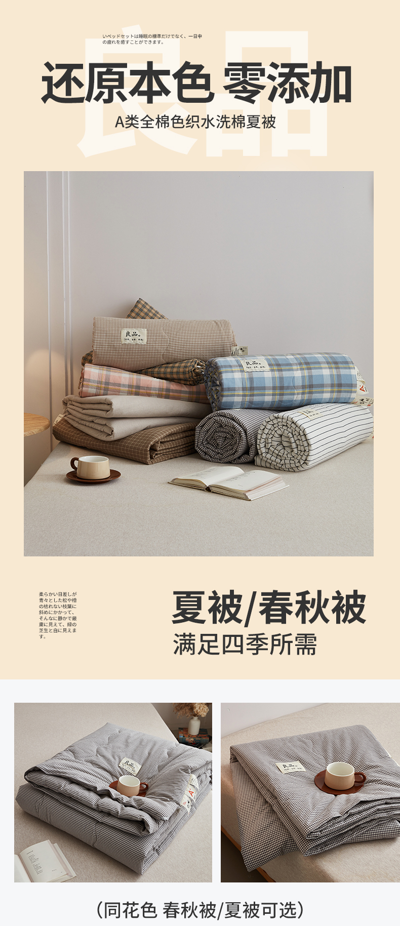 (总)尊妙被业 2026新款全棉色织水洗棉春秋被夏被-叠拍,春野-咖,灰细条,乐事-兰,乐事-绿,蜜格-灰,蜜格-米,莫妮-兰,莫妮-玉,沐妍-黄,千鸟格-灰,千鸟格-驼,童话-粉,晚晴-红,晚晴-咖