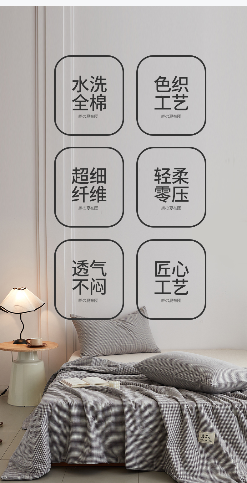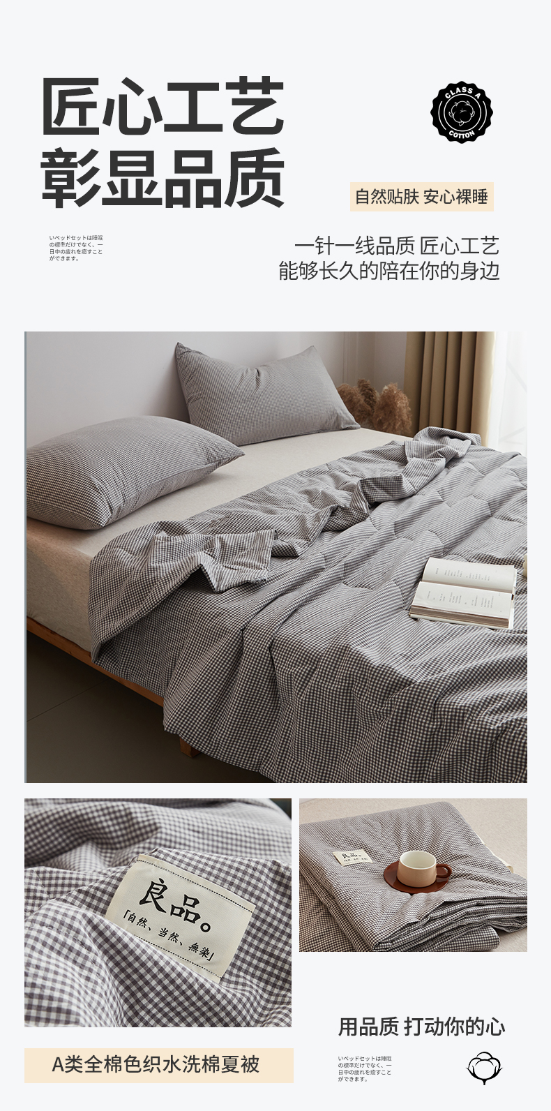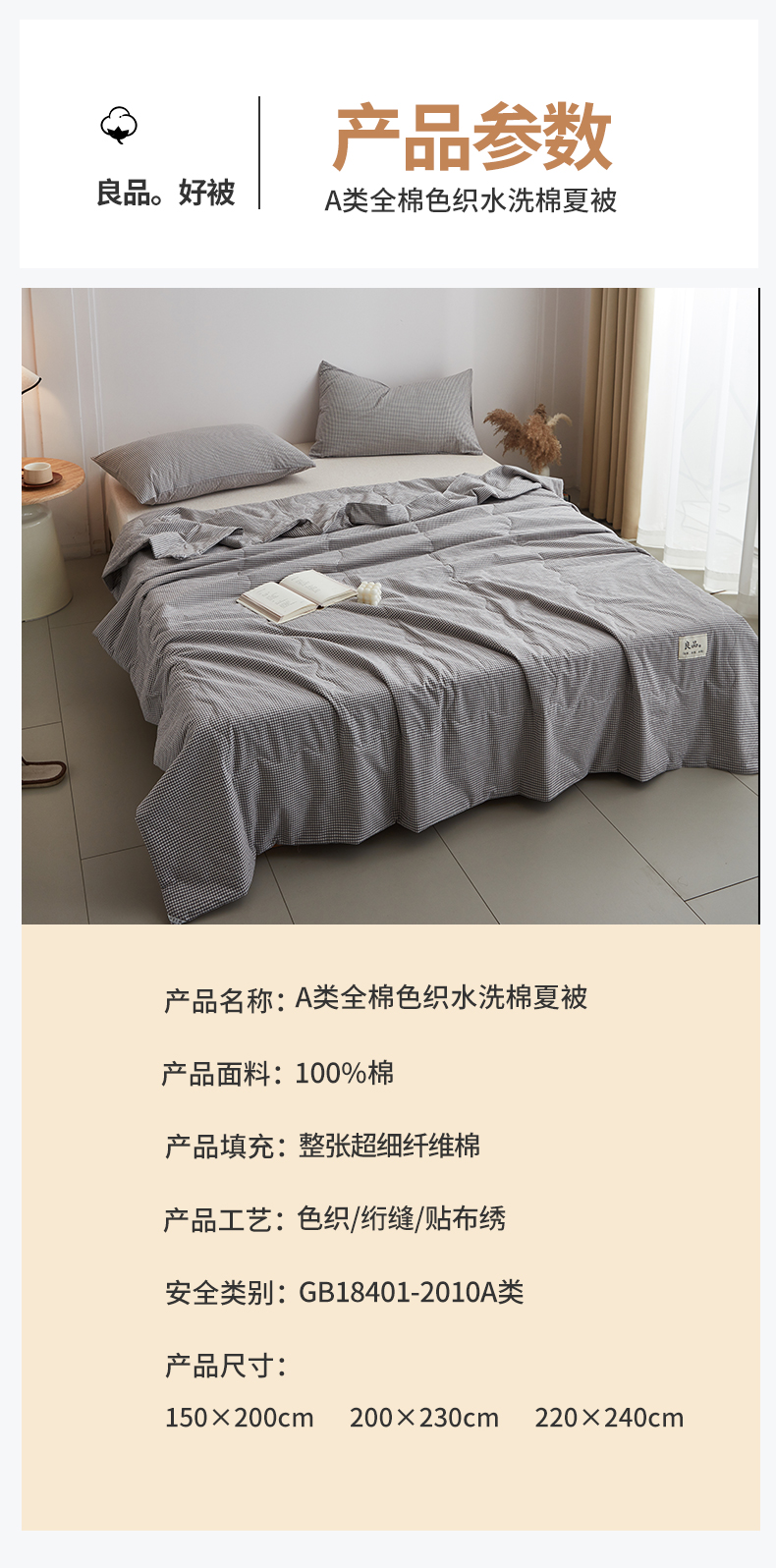 • 91家纺网 家纺一手货源 找家纺 尊妙被业 2026新款全棉色织水洗棉春秋被夏被-叠拍 蜜格-灰