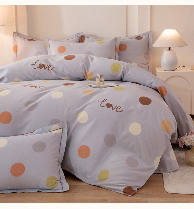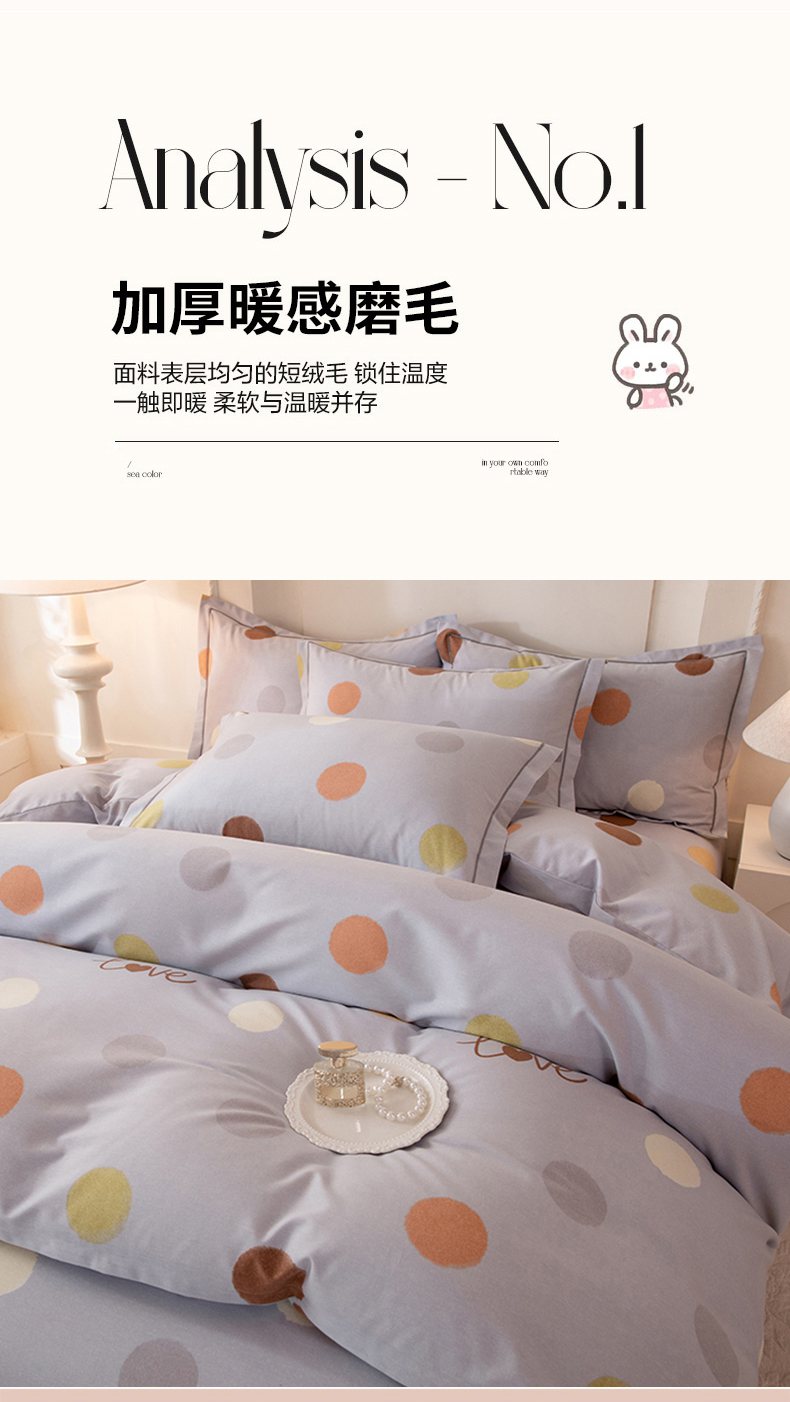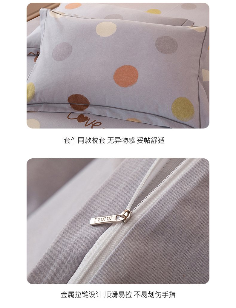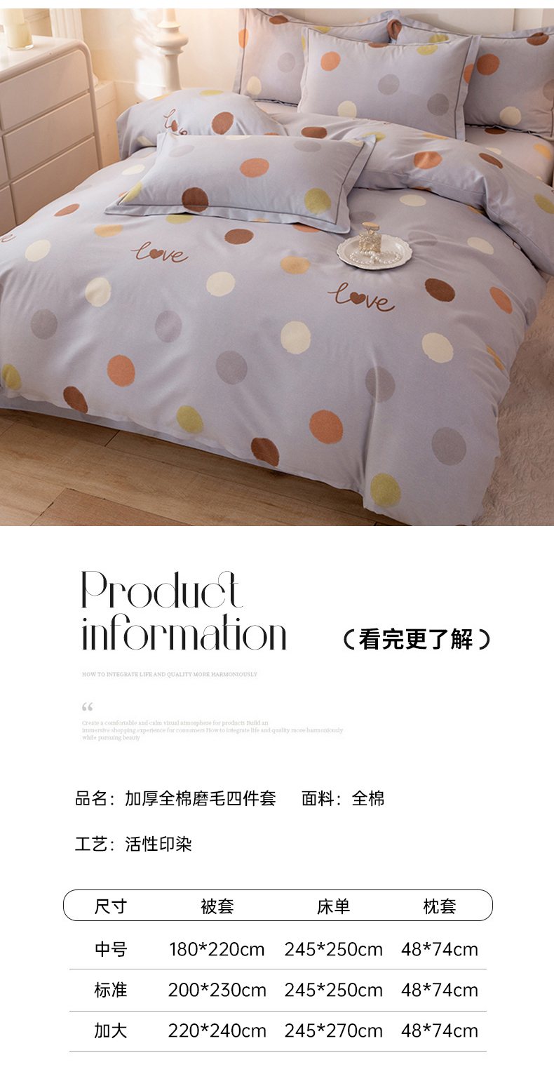 商品名称:磨毛世家家纺 2026新款铂金磨毛纯棉加厚全棉磨毛四件套 波点-灰