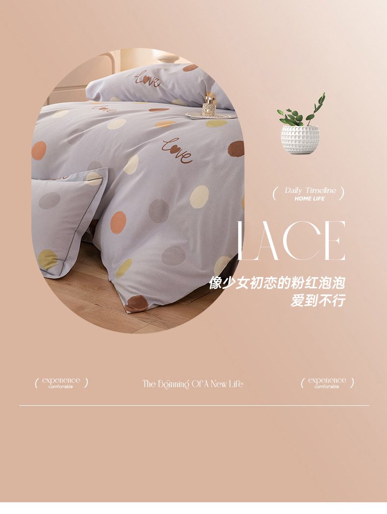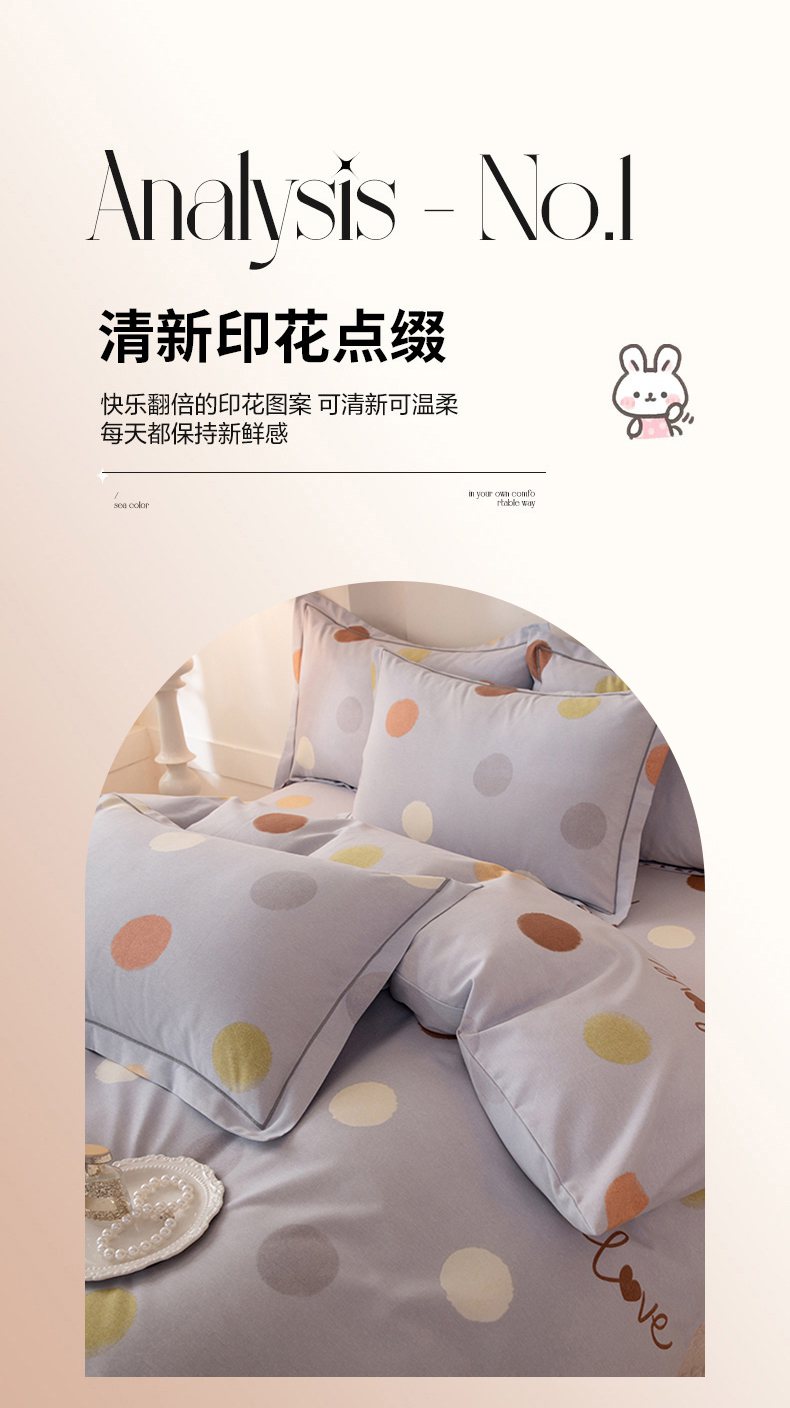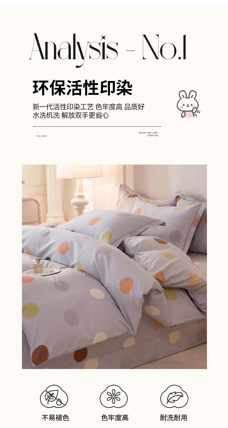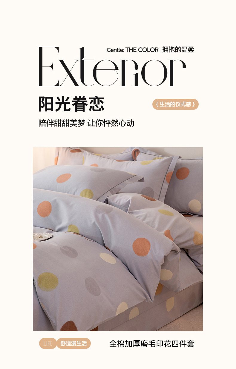 商品名称:磨毛世家家纺 2026新款铂金磨毛纯棉加厚全棉磨毛四件套 波点-灰
