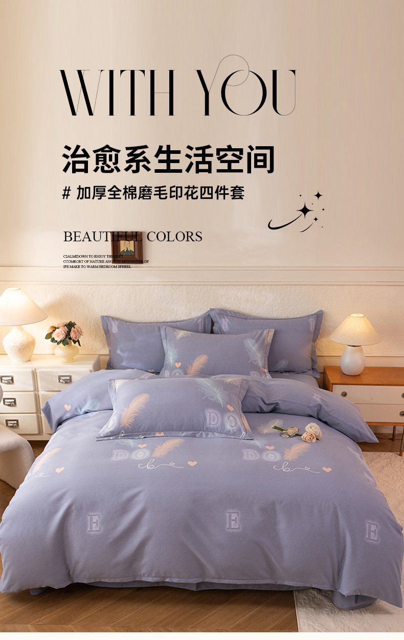 (总)磨毛世家家纺 2026新款铂金磨毛纯棉加厚全棉磨毛四件套,波点-粉,波点-灰,城南往事-紫,风信紫,哥伦比亚-蓝,花团锦簇-灰,华丽之都-桔,静初-灰,玫瑰之心-灰,上林春色-蓝,香雪海-粉,香雪海-蓝,永恒之羽-灰,永恒之羽-蓝