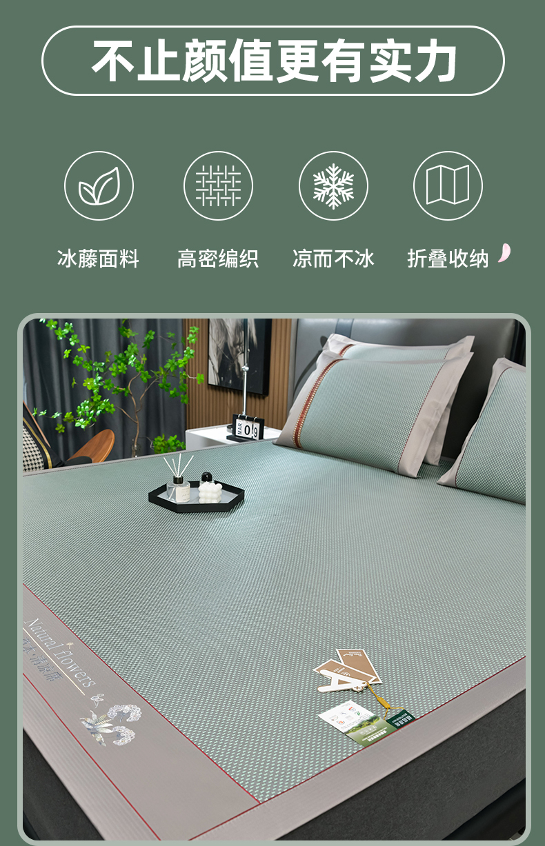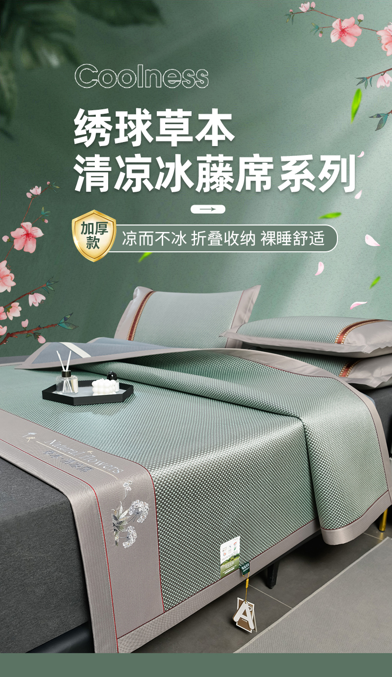 当前位置: 91家纺网 > 商品网购 > 床上用品 > 凉席 > 凉席套件 > 小牛席业 2026新款加厚款-绣球草本清凉冰藤席系列凉席藤席冰藤席冰丝席竹席乳胶席乳胶凉席凉感豆豆席 加厚款-绣球草本冰藤席 (绿色)