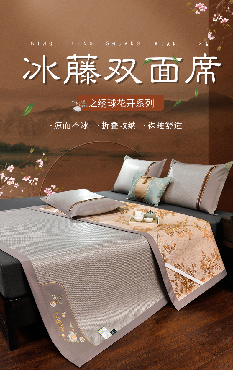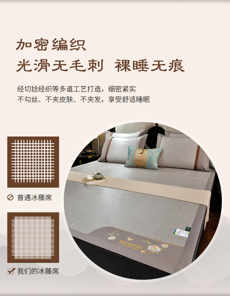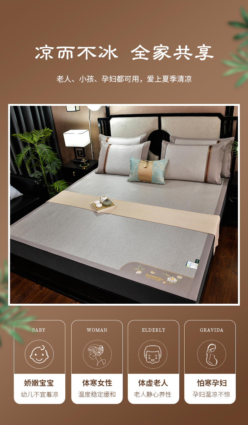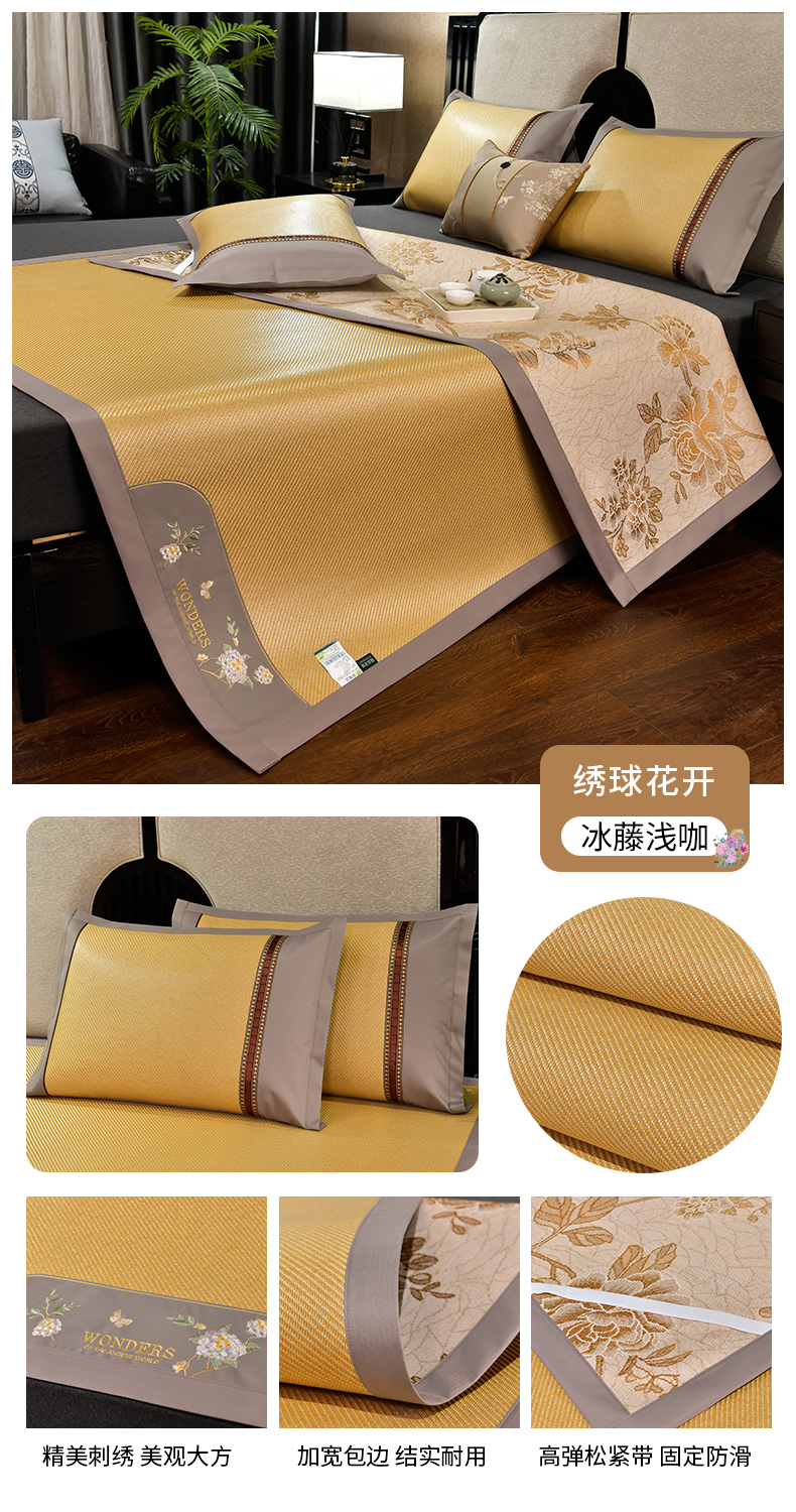 2023新款夏日冰点-冰藤双面席凉席藤席竹席冰丝席乳胶席,咖色,蓝色,绿色,香槟