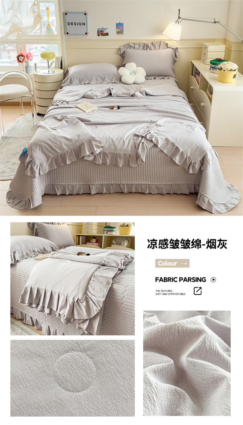 (总)兄弟坊 2026新款韩版凉感皱皱绵花边夏被床盖四件套,凉感皱皱绵-香芋紫,凉感皱皱绵-天空蓝,凉感皱皱绵-橄榄绿,凉感皱皱绵-烟灰,凉感皱皱绵-玉色,组合