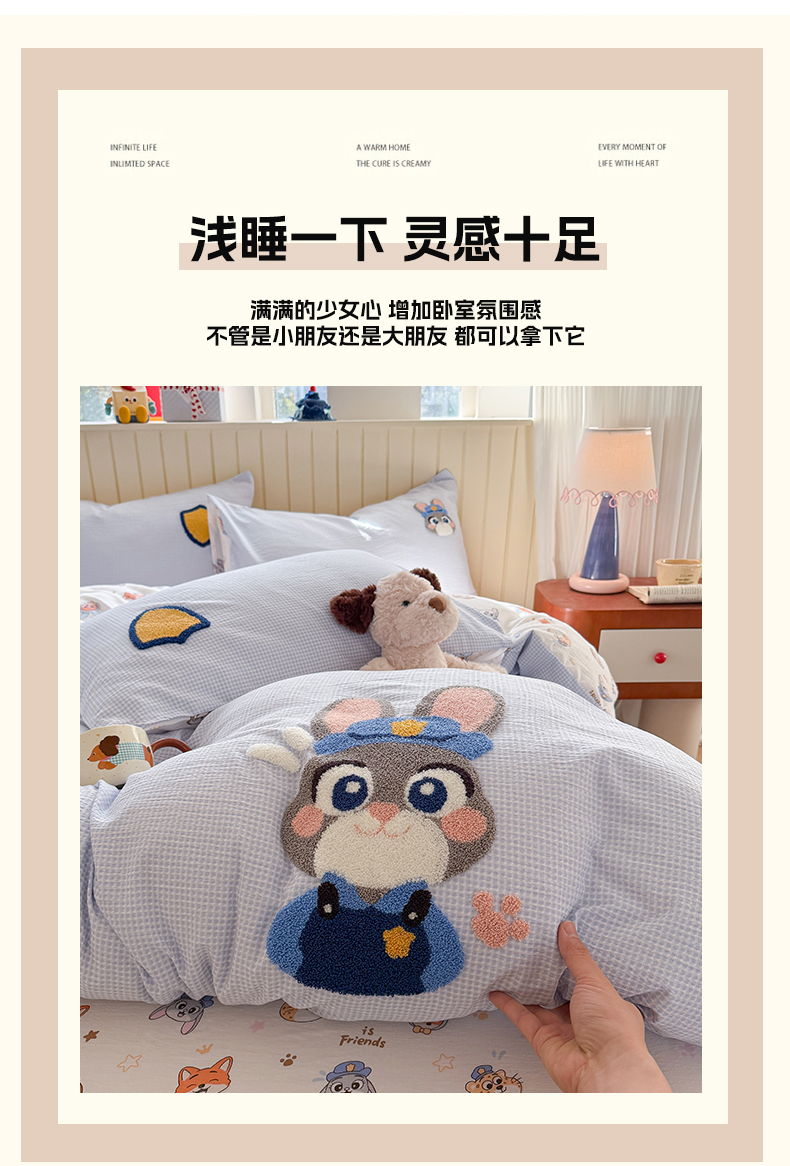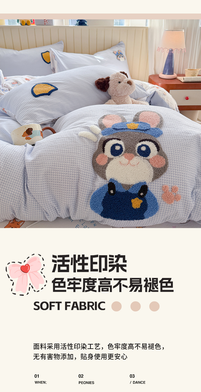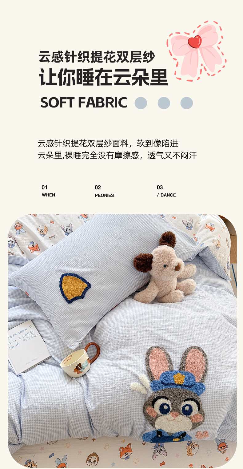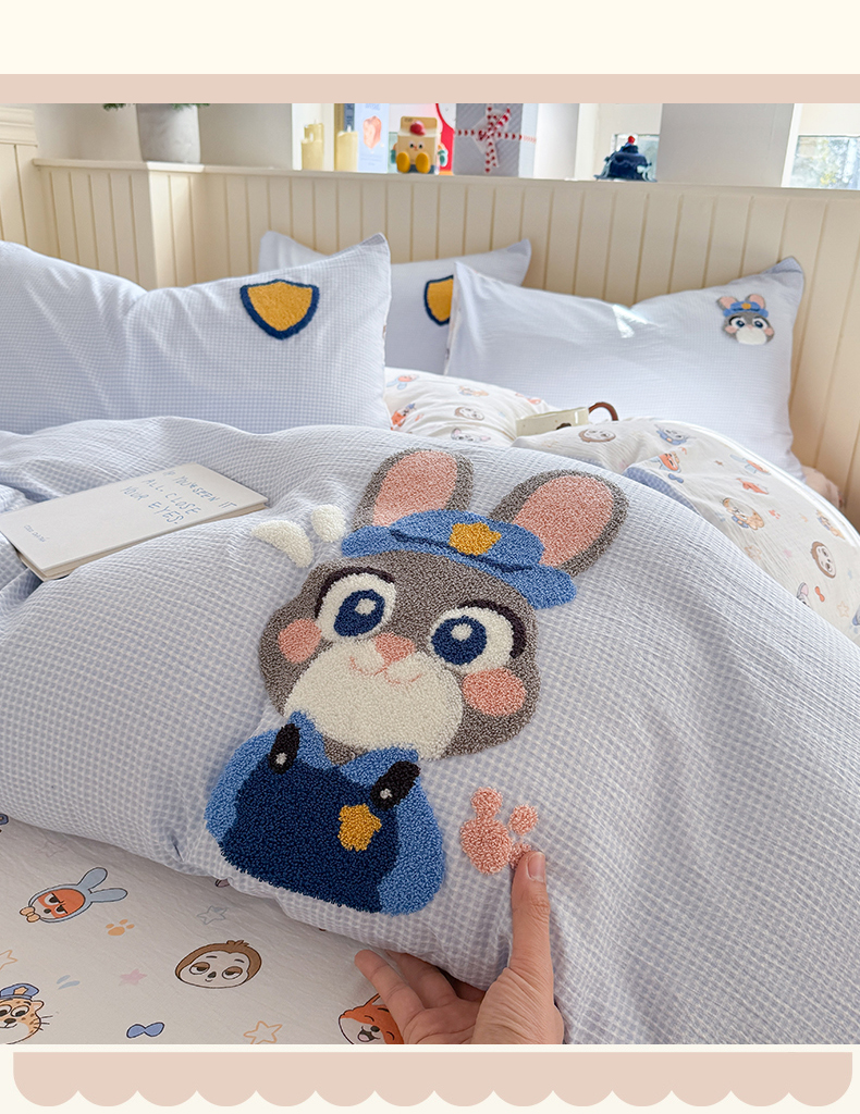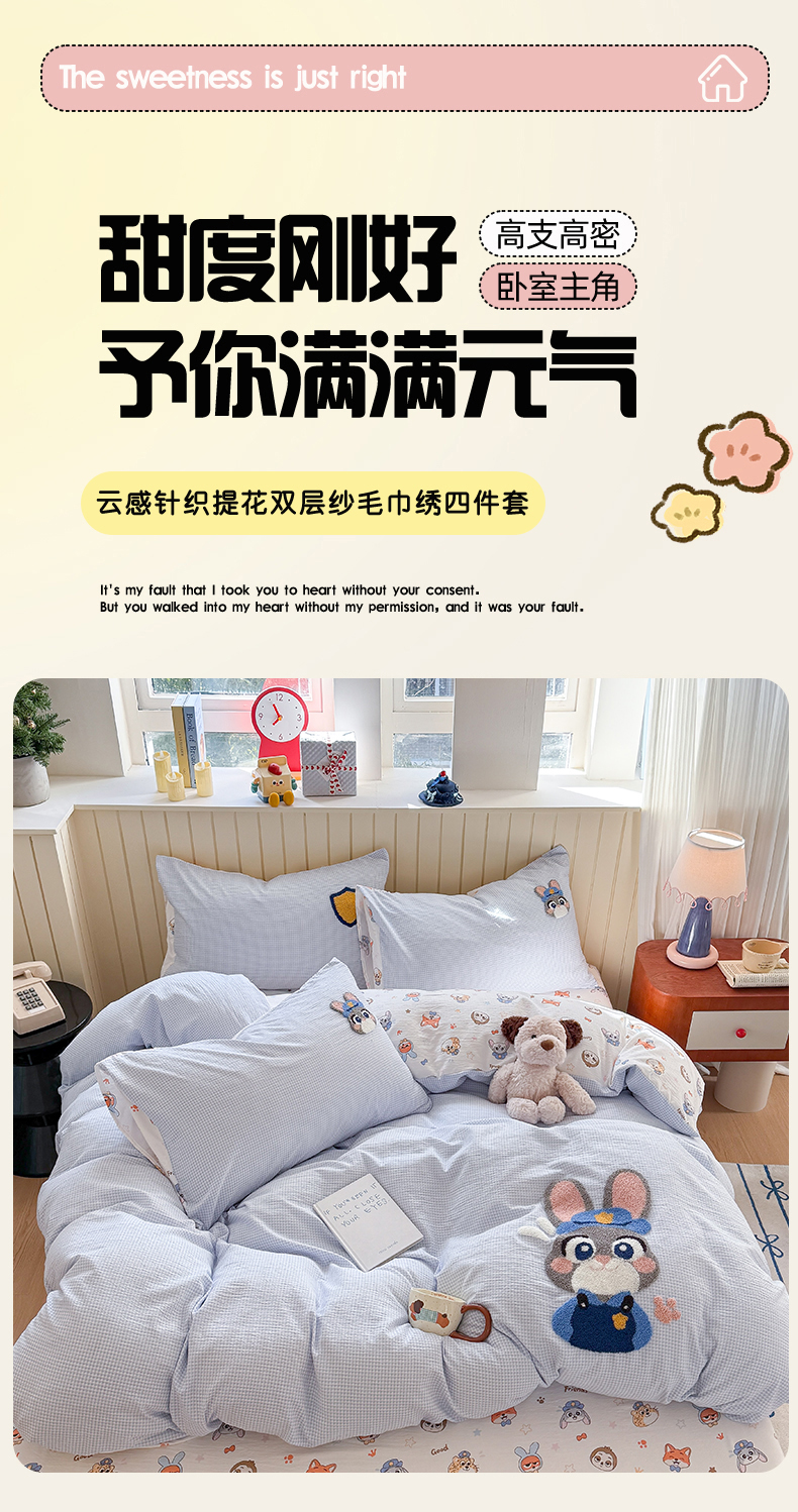 当前位置: 91家纺网 > 商品网购 > 床品套件 > 四件套 > 针织棉四件套 > 艾特你 2026新款针织提花双层纱可爱毛巾绣四件套 兔八哥