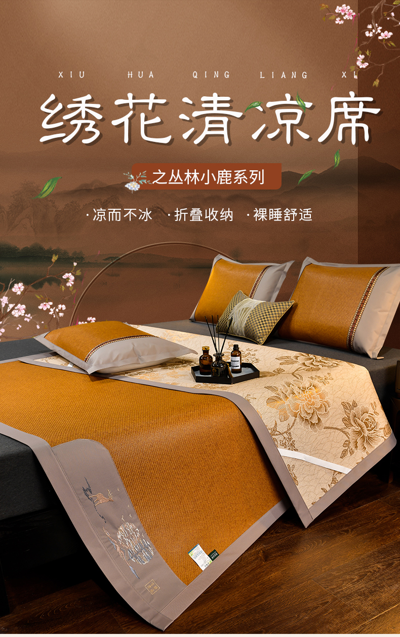当前位置: 91家纺网 > 商品网购 > 床上用品 > 凉席 > 其他凉席 > 小牛席业 2026新款丛林小鹿绣花清凉-双面席系列 丛林小鹿-绣花清凉席(红棕)