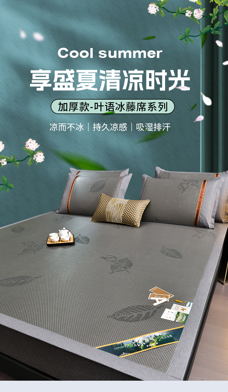 当前位置: 91家纺网 > 商品网购 > 床上用品 > 凉席 > 藤席 > 小牛席业 2026新款加厚款叶语冰藤席系列 加厚款-叶语冰藤席-黑咖