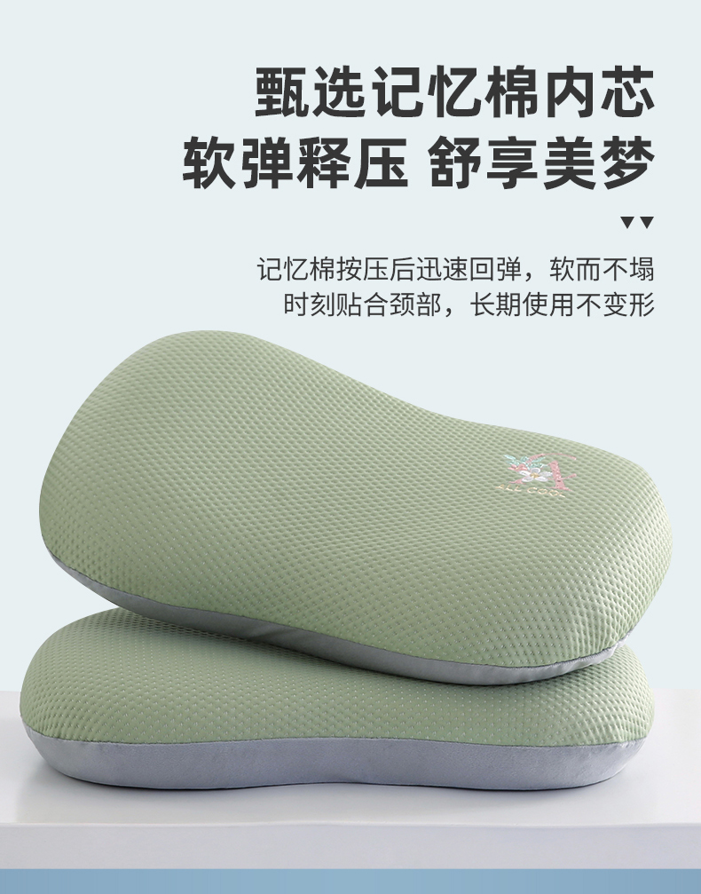 商品名称:小牛席业 2026新款猫肚记忆夏凉枕枕头枕芯 绿色