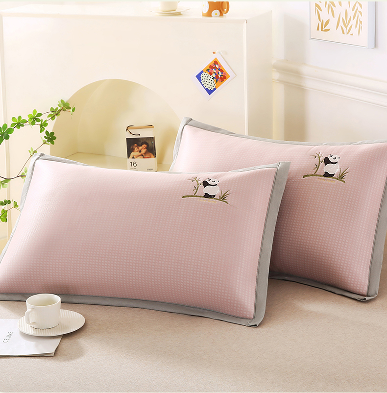 小牛席业 2026新款华夫格爱家熊猫夏凉枕套 粉色