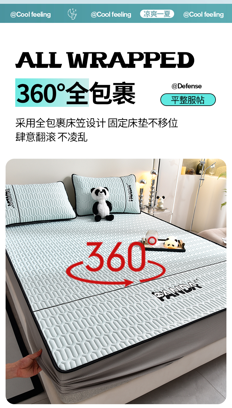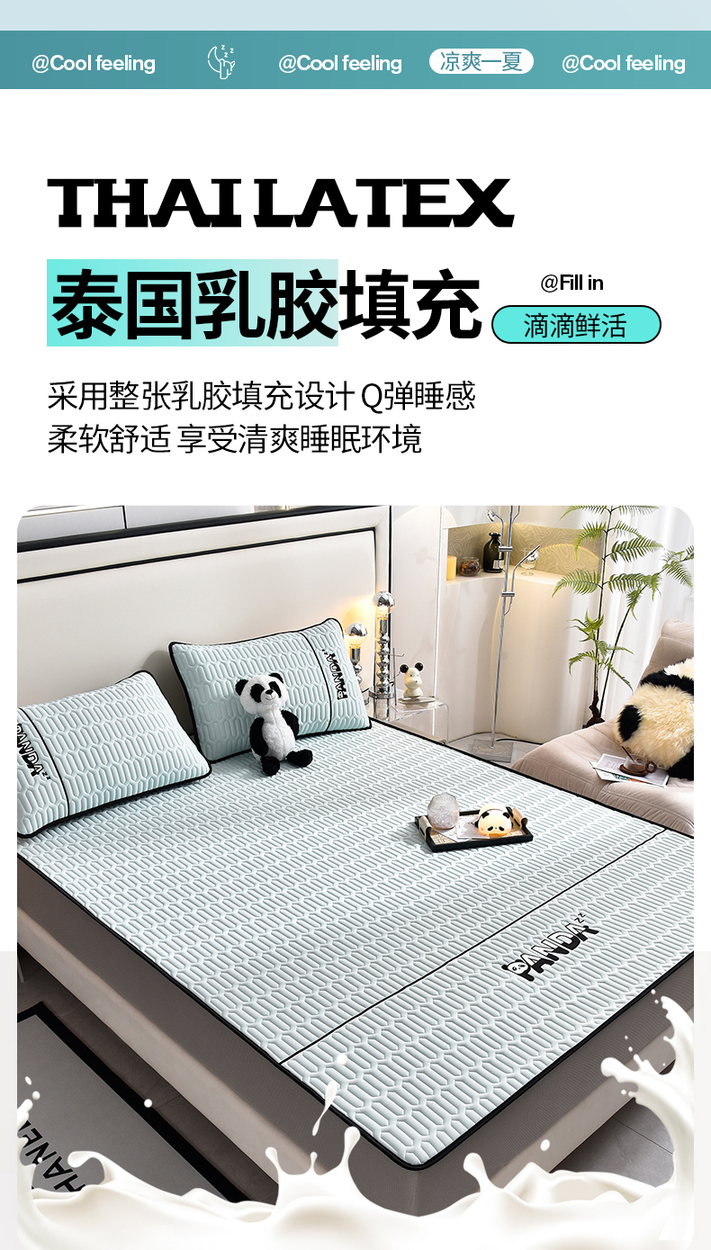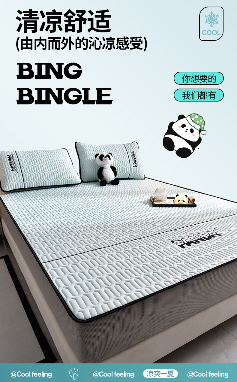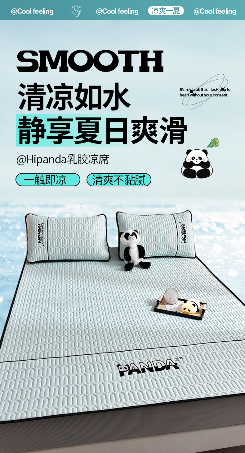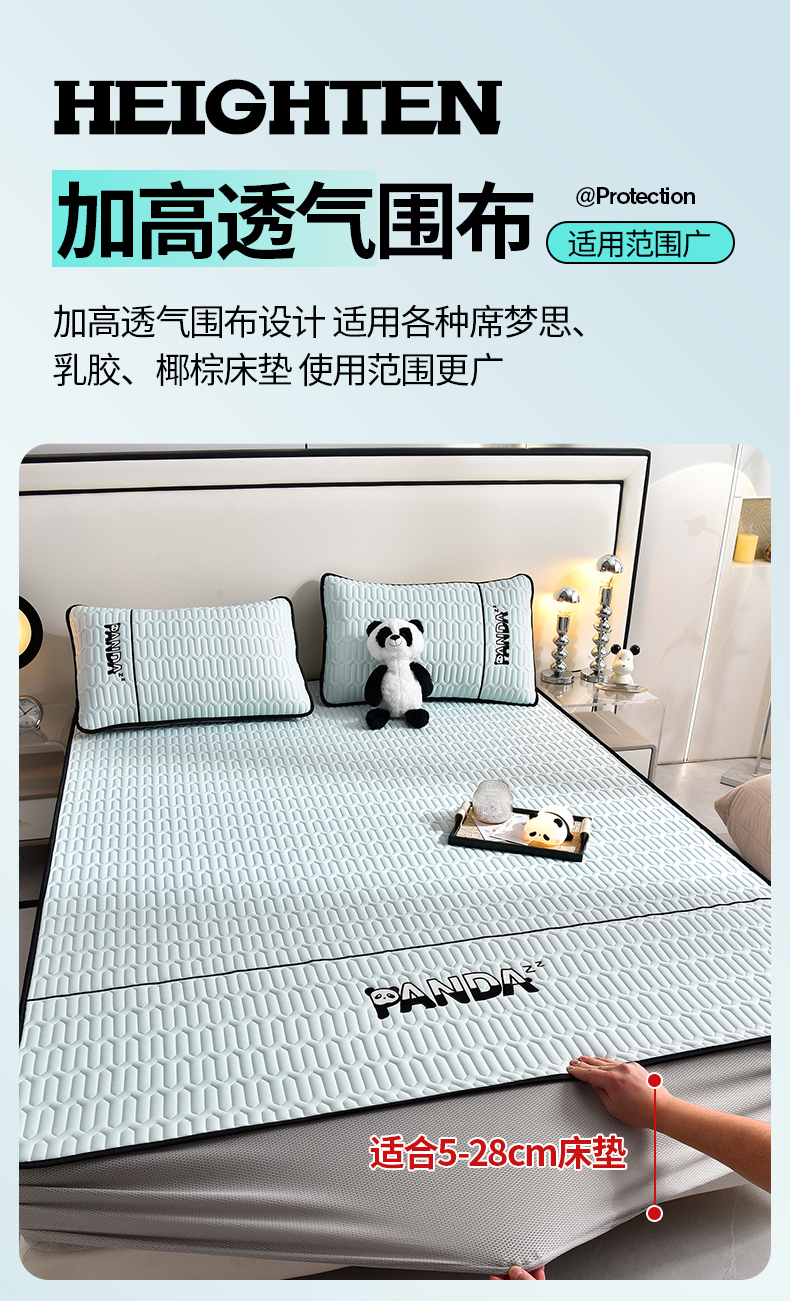 当前位置: 91家纺网 > 商品网购 > 床上用品 > 凉席 > 乳胶凉席 > 炫拼家纺 2026新款Hpanda床笠款凉感丝乳胶凉席 Hipanda-冰雪蓝