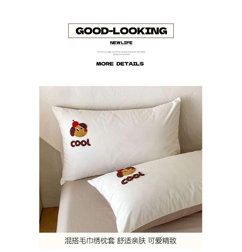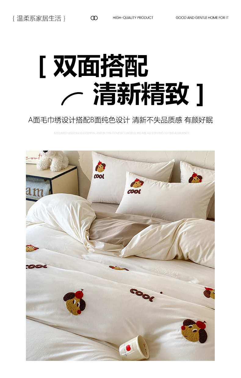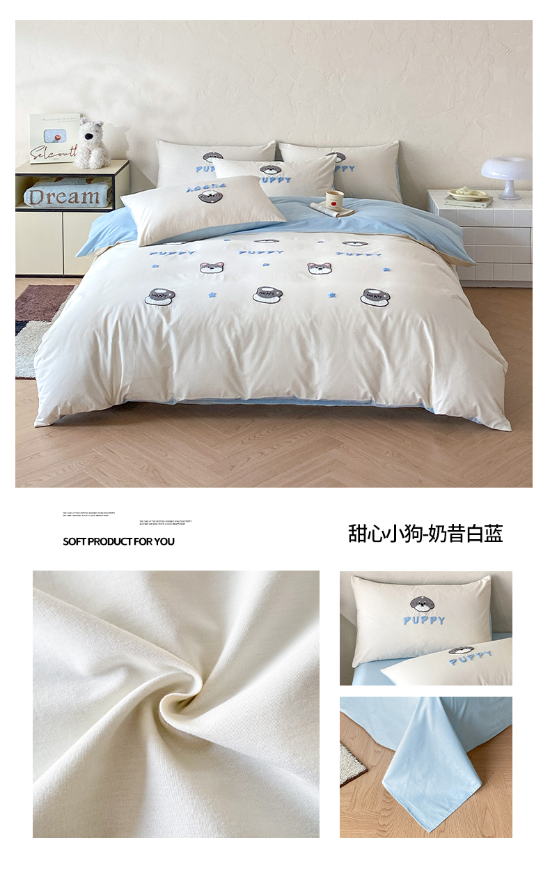 当前位置: 91家纺网 > 商品网购 > 床品套件 > 四件套 > 全棉普通四件套 > 拼社家纺 2026新款A类母婴级全棉纯棉水洗棉四件套毛巾绣纯棉四件套床上用品提供买家秀 cool小狗-白卡其