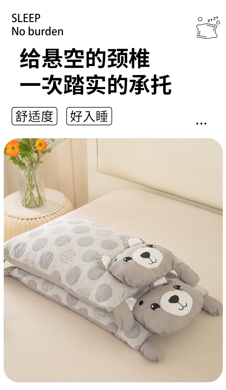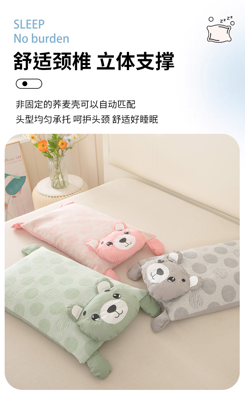 (总)梦莱家纺 2026新款波点熊水洗棉麻荞麦枕