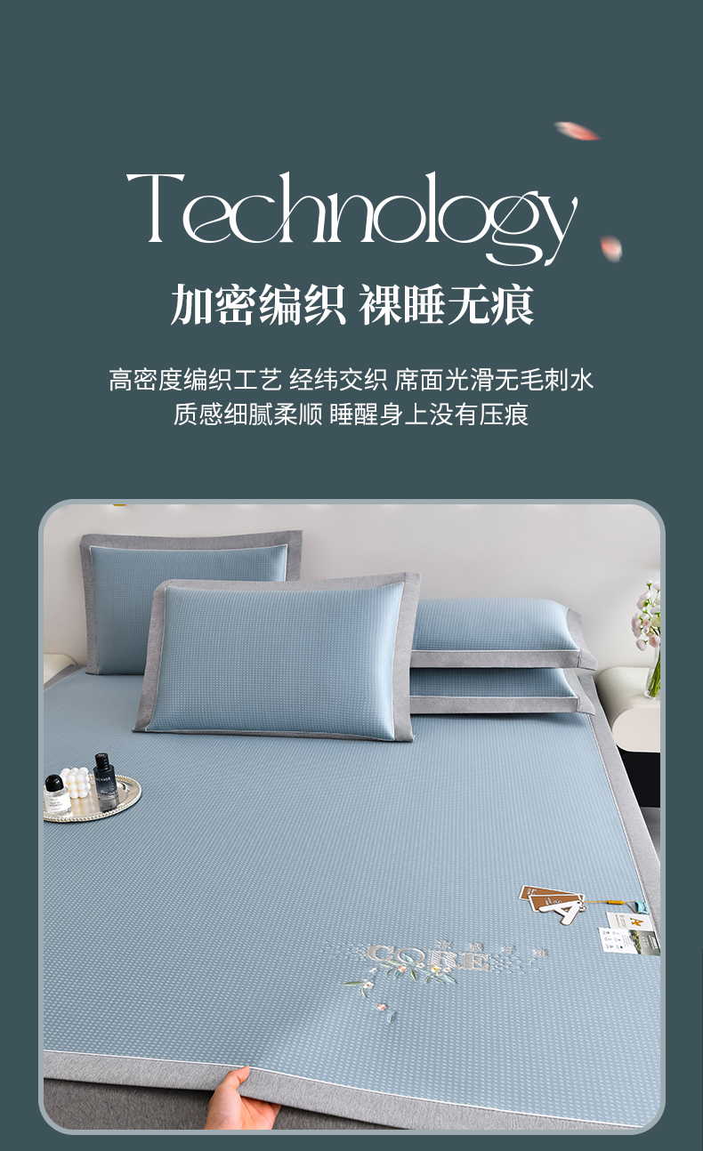 (总)2023新款超精密冰丝席-小斜纹系列-床笠款藤席凉席竹席,粉色,蓝色,绿色,银灰