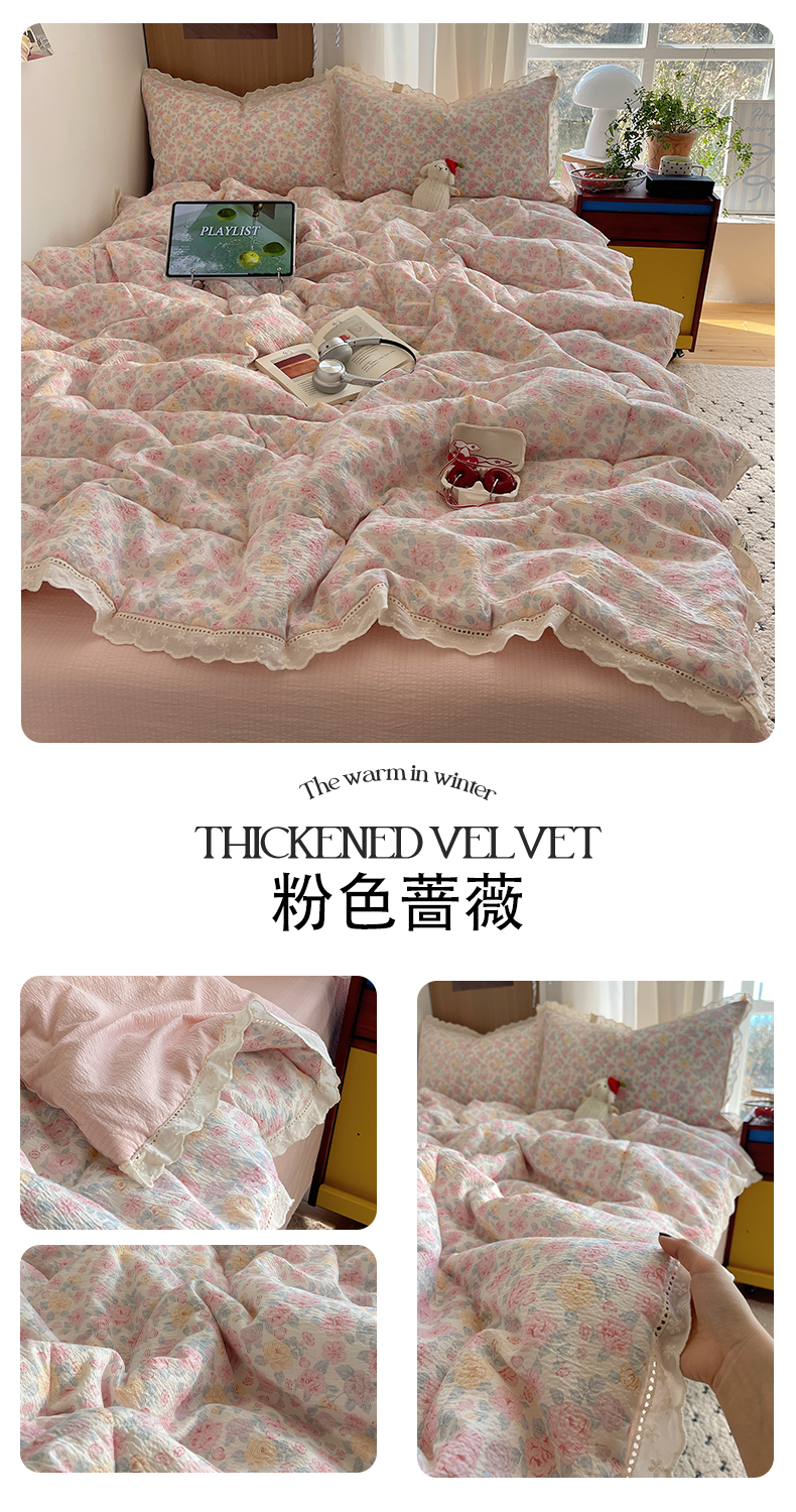 商品名称:梵克保罗 2026春夏新款全棉纯棉花边皱皱纱单夏被夏凉被空调被夏被四件套 紫菱花