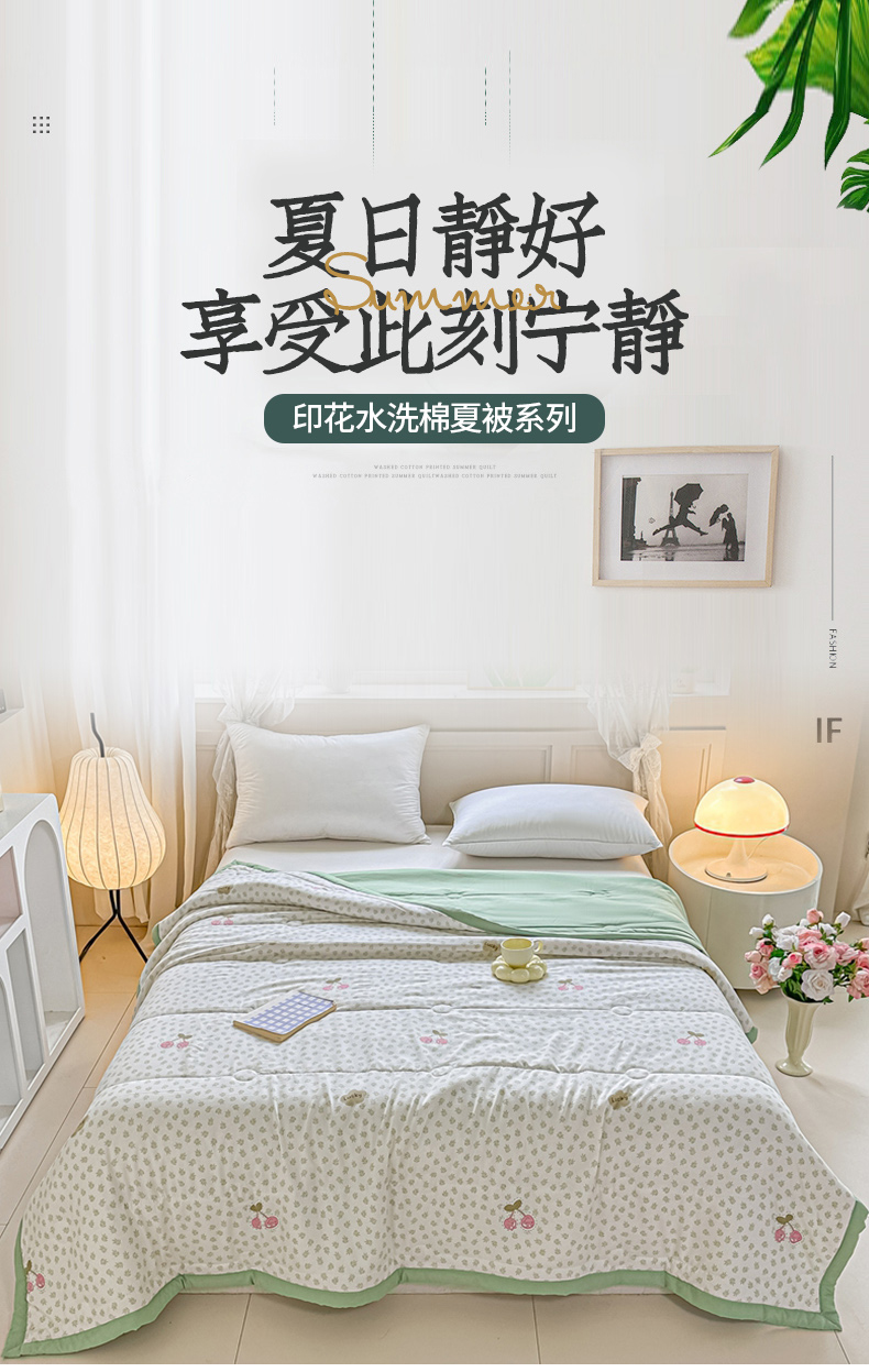 商品名称:好欣怡家纺 2026新款水洗棉夏被空调被被子被芯印花小清新夏凉被直播热款水洗棉包边款-樱桃