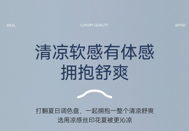 (总)恬思语家纺 2025新款凉感丝时尚彩绘夏凉被,淡雅云影,粉色梦幻,蓝绿云丝,浪漫飘带,清新水漾,柔和幻彩