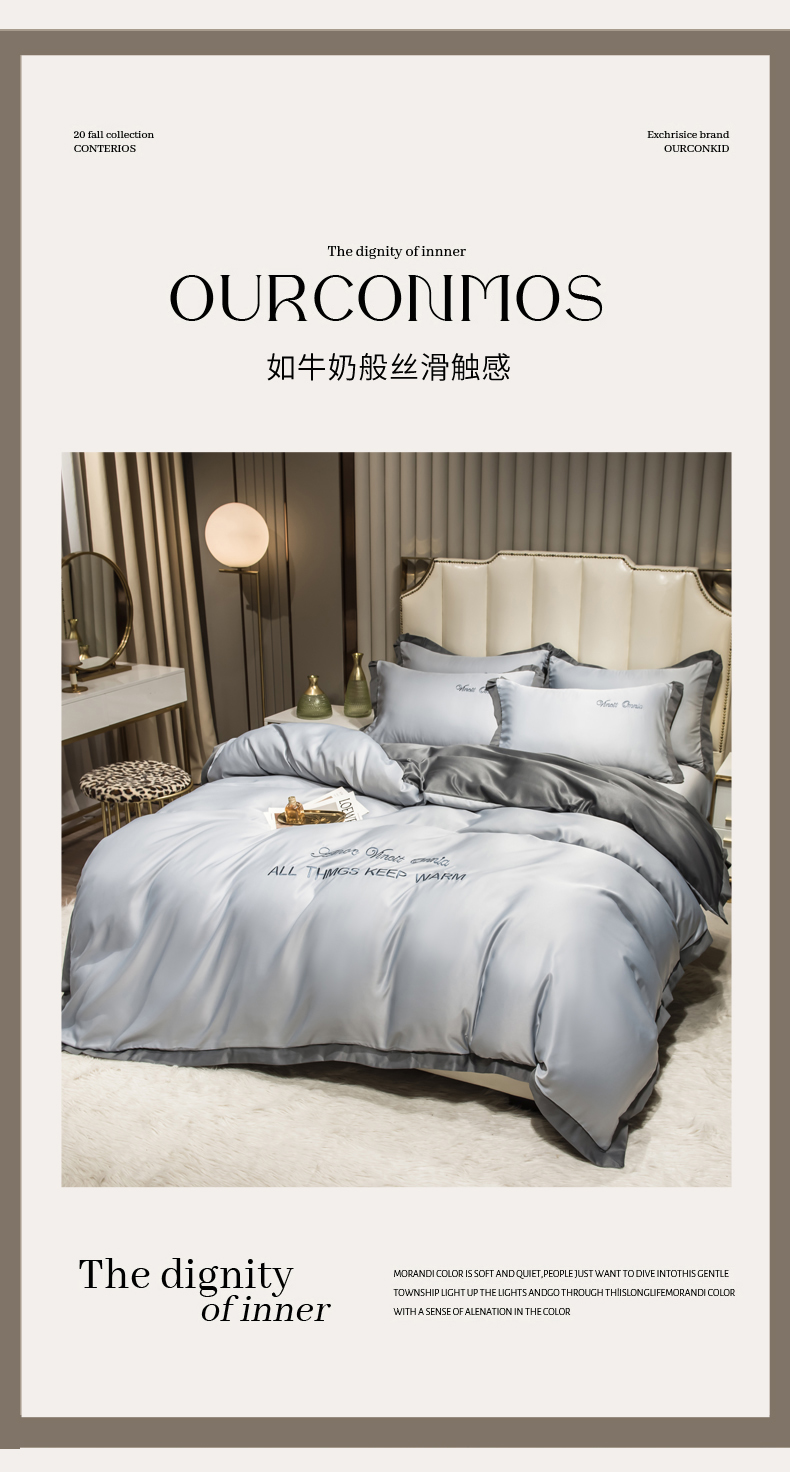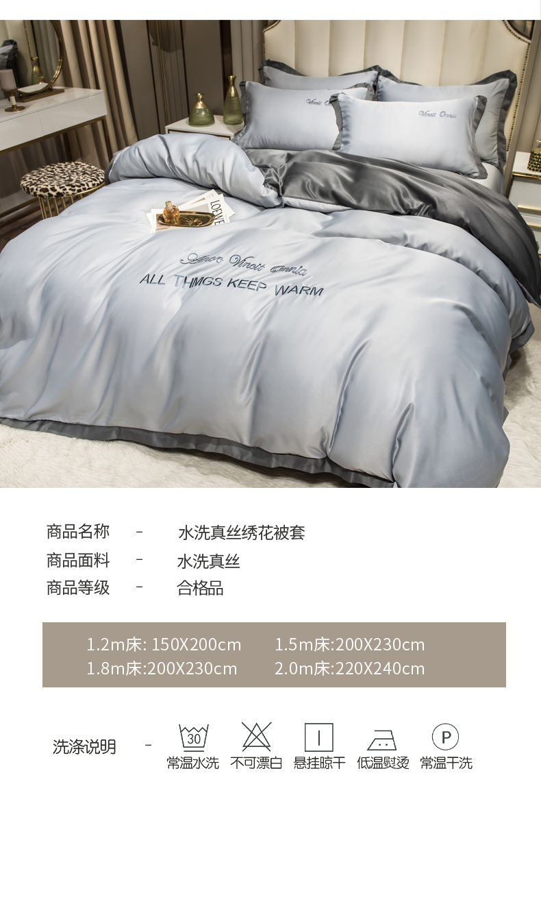 当前位置: 91家纺网 > 商品网购 > 床品套件 > 四件套 > 水洗真丝四件套 > 绒世界 2026新款水洗真丝盛夏系列四件套单被套四件套 高级灰