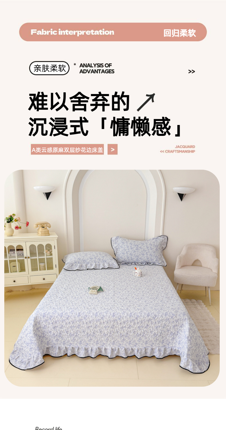 • 91家纺网 家纺一手货源 找家纺 999家纺 2026新款双层纱花边床盖单件加厚夹棉云感皱皱纱花边床单三件套四季跑量(提供买家秀) 初见【花边款】