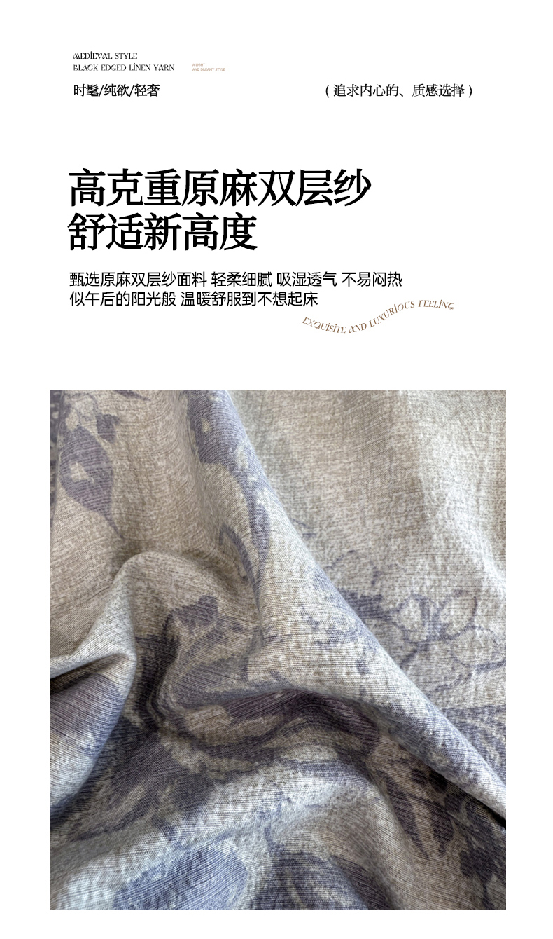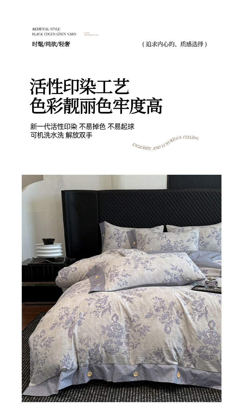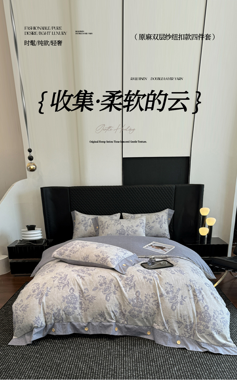 当前位置: 91家纺网 > 商品网购 > 床品套件 > 四件套 > 其它四件套 > 晚爱家纺(原晚安家居) 2026新款加厚双层纱原麻纽扣款四件套 绽放