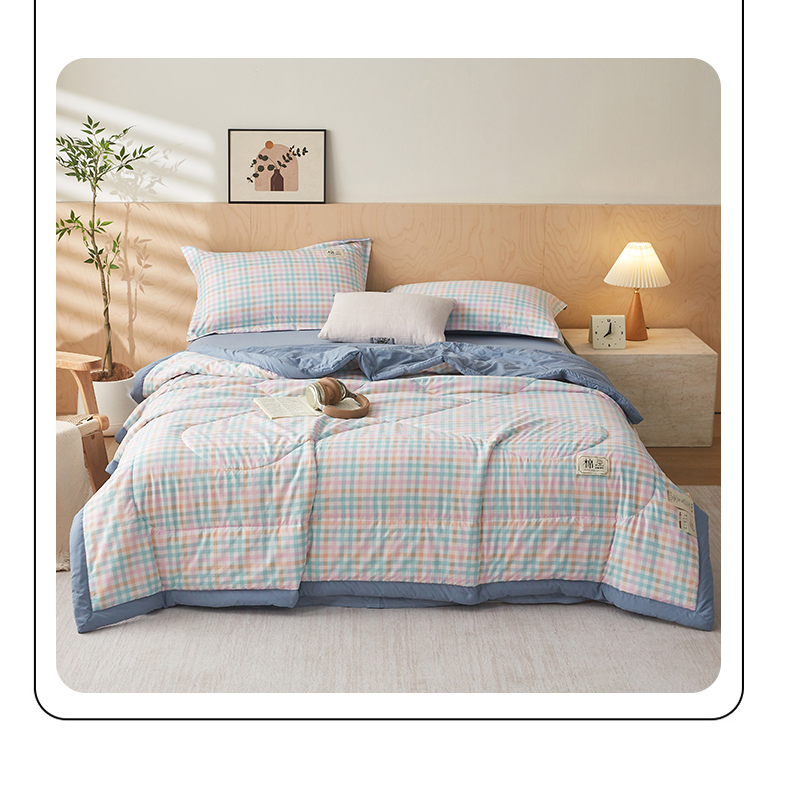 (总)帕芬鸟家纺 2026新款100%棉花夏凉被空调被夏被四件套-格子系列,冰激凌格,格雅灰,格雅绿,格韵粉,格韵蓝黄,蓝灰格,蓝小格,绿小格,米小格