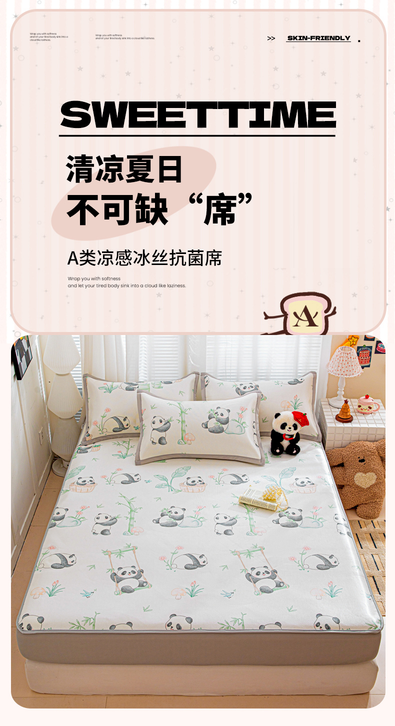 当前位置: 91家纺网 > 商品网购 > 床上用品 > 凉席 > 冰丝席 > 富馨莱 2026新款冰丝凉席床笠款凉席席子支持一件定制定做 快乐熊猫