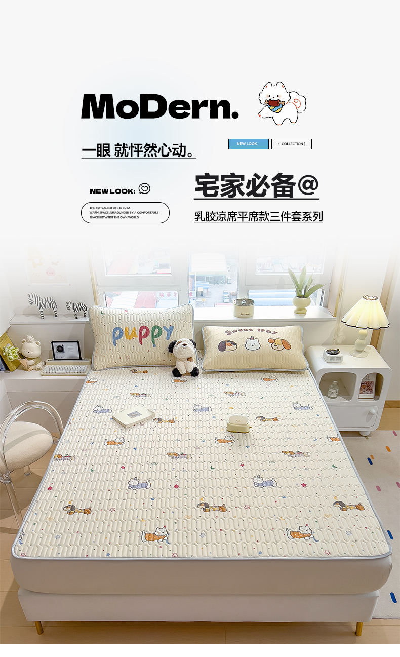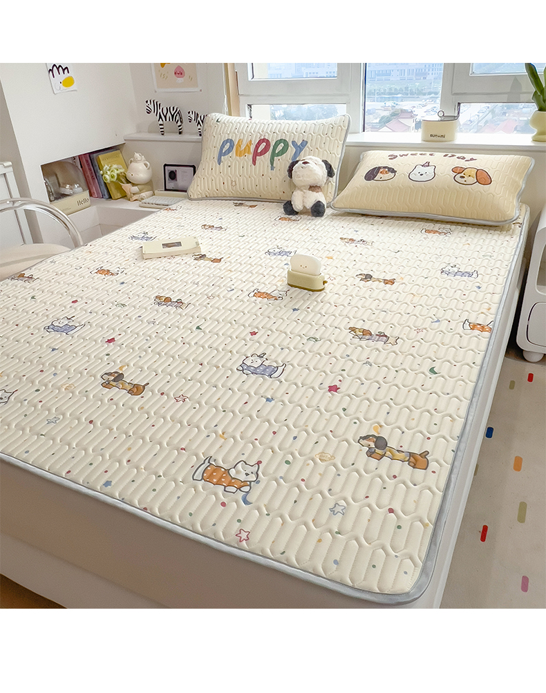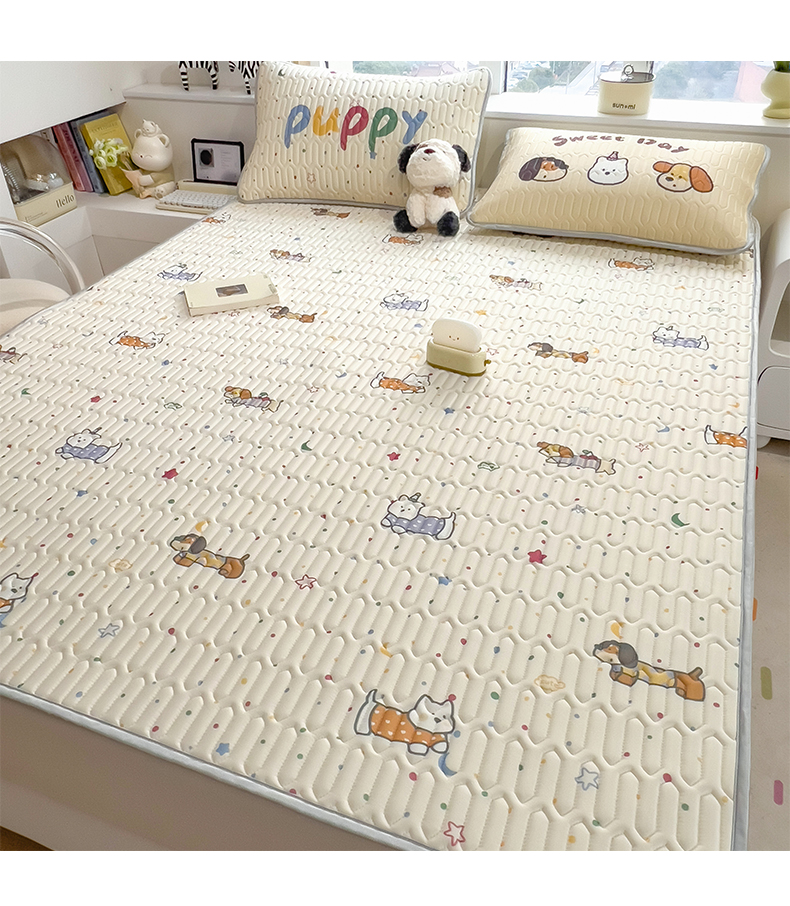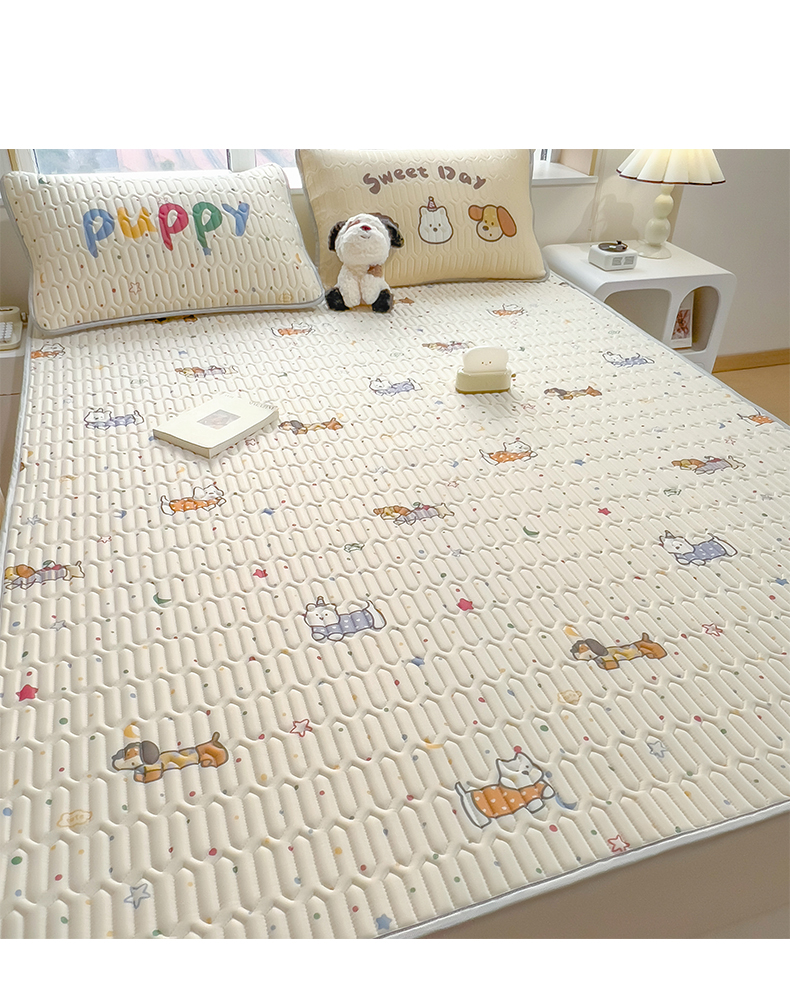 商品名称:摩妮卡 2026新款数码大版小清新乳胶凉席床席款三件套-场景一 萌犬趣乐园