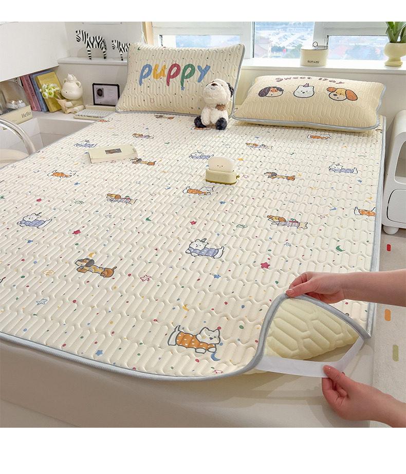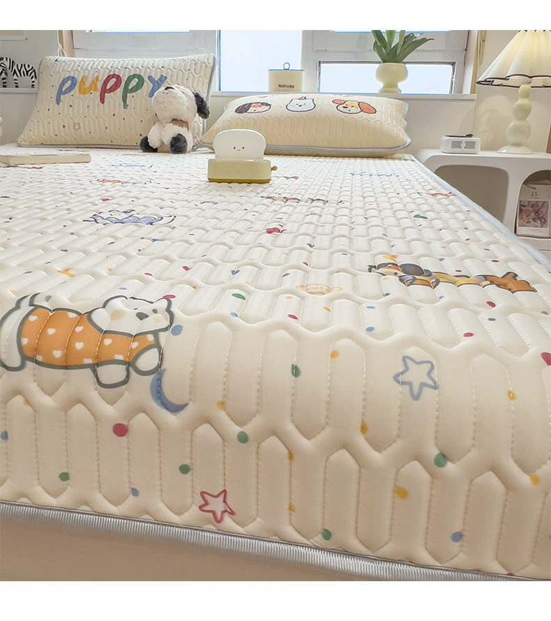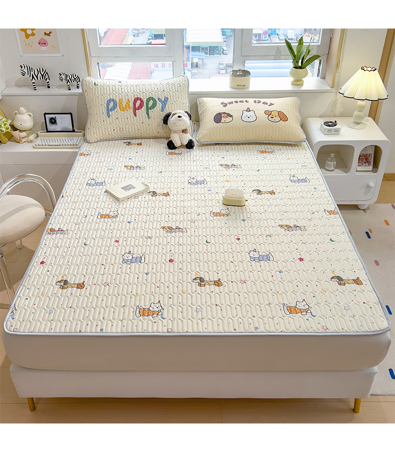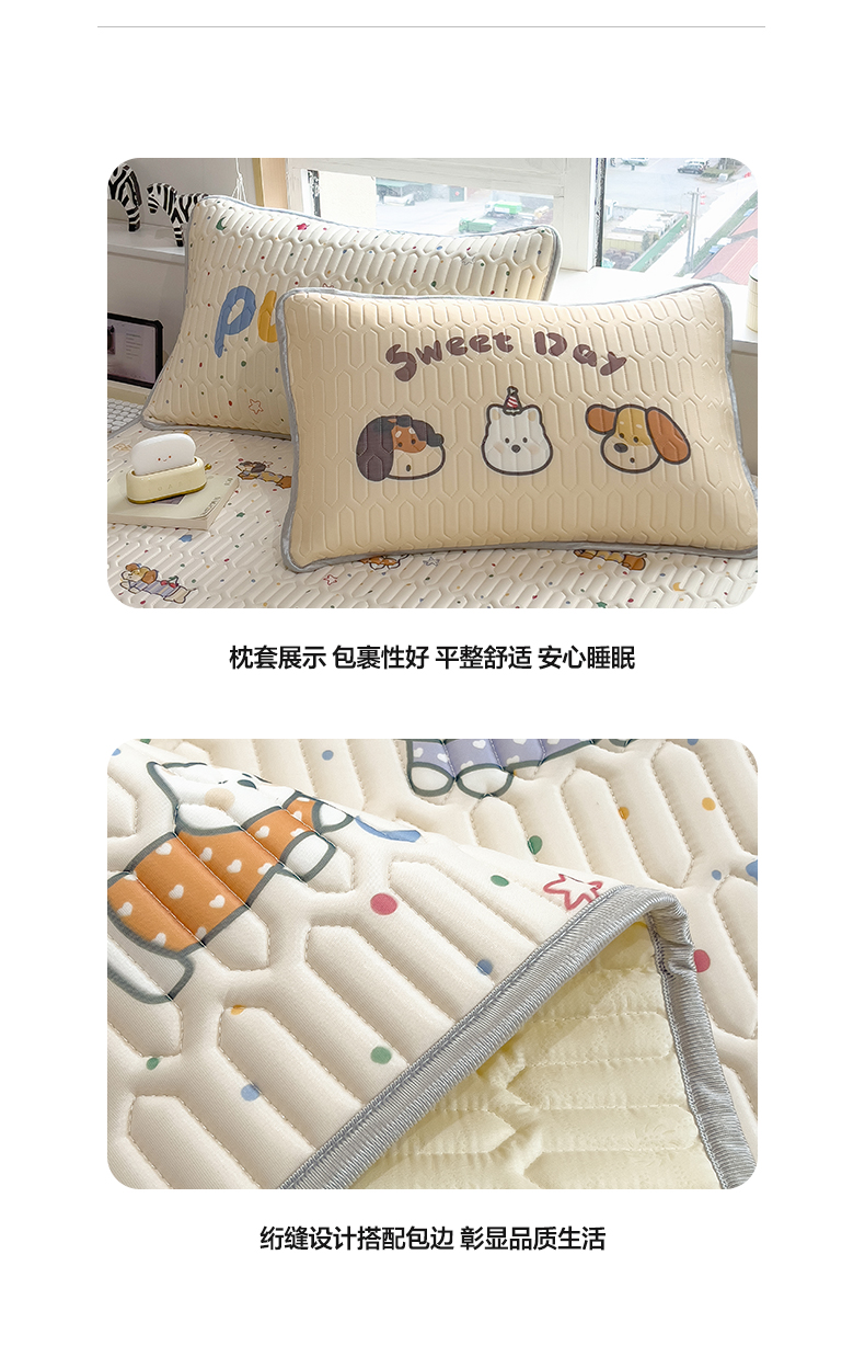 商品名称:摩妮卡 2026新款数码大版小清新乳胶凉席床席款三件套-场景一 萌犬趣乐园