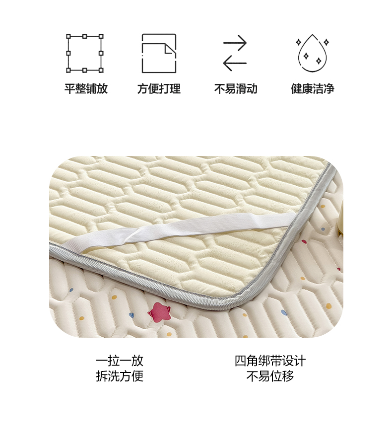 (总)摩妮卡 2026新款水洗棉夹棉防水床褥床垫款三件套,几何-卡其,几何-奶白,几何-浅粉,几何-天蓝