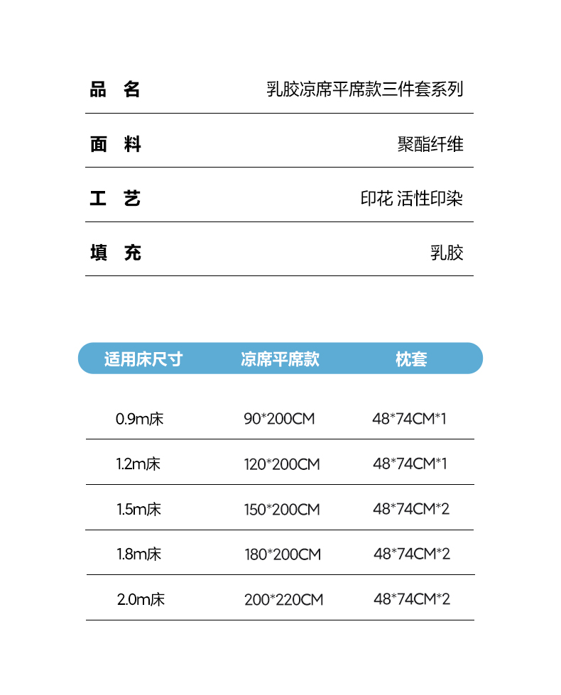180x200cm凉席+枕套一对