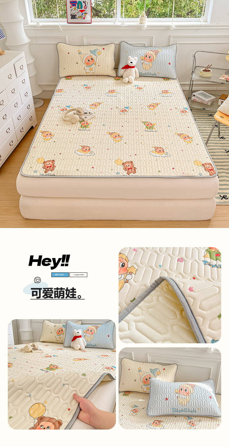 (总)摩妮卡 2026新款水洗棉夹棉防水刺绣爱心床褥床垫款三件套,爱心-奶白,爱心-撑粉,爱心-卡其,爱心-天蓝