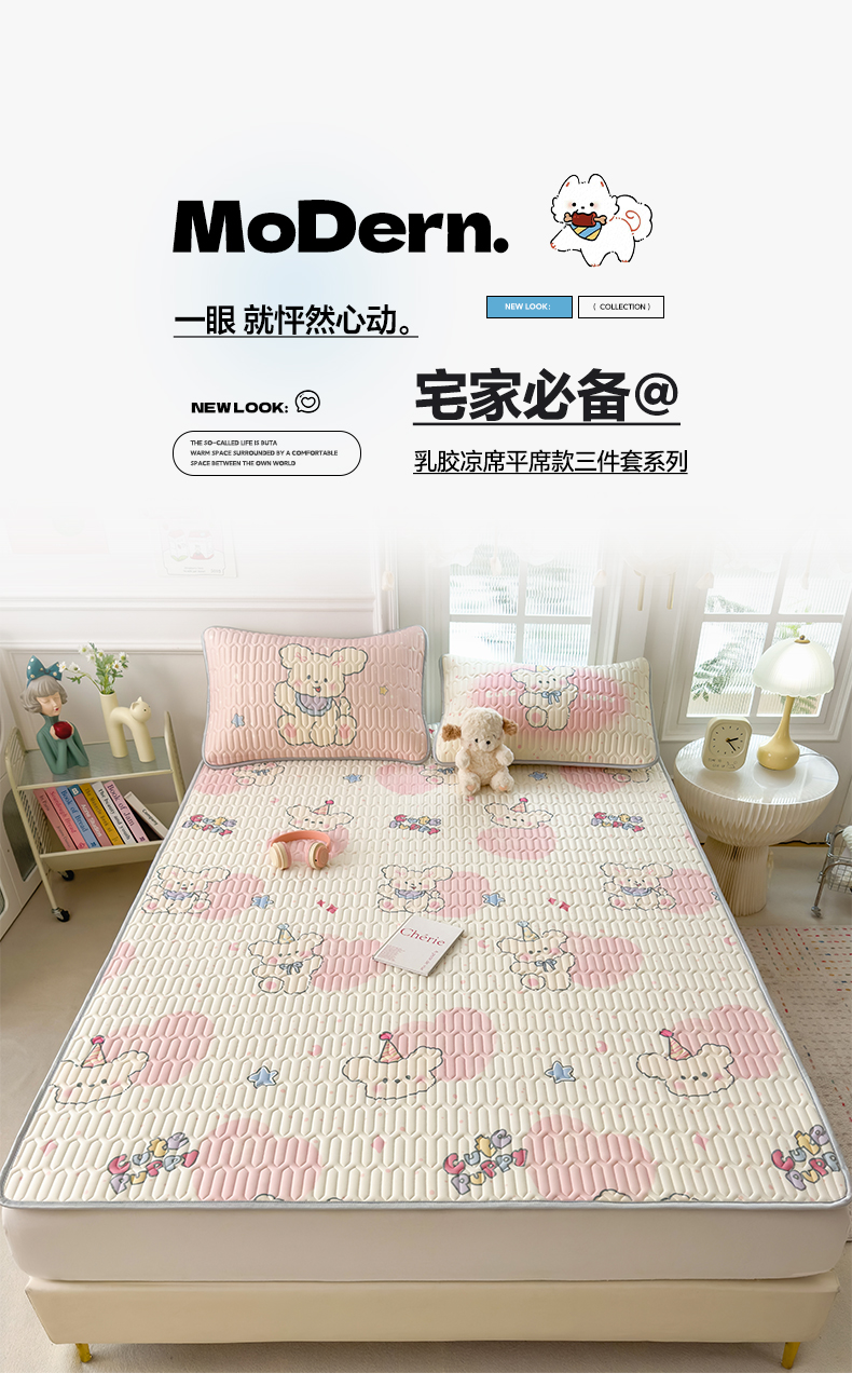 摩妮卡 2026新款数码大版小清新乳胶凉席床席款三件套-场景一 甜心小熊