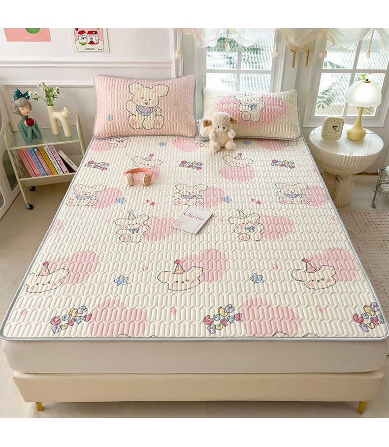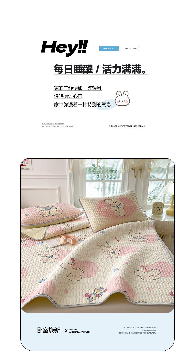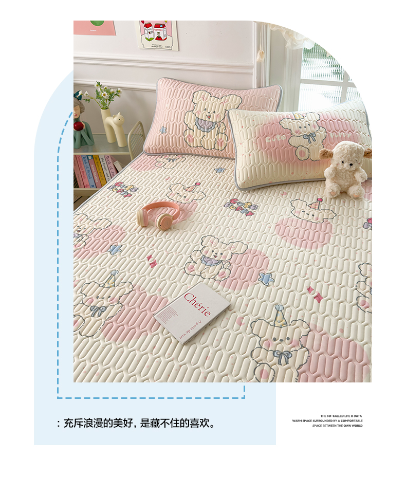 商品名称:摩妮卡 2026新款数码大版小清新乳胶凉席床席款三件套-场景一 甜心小熊