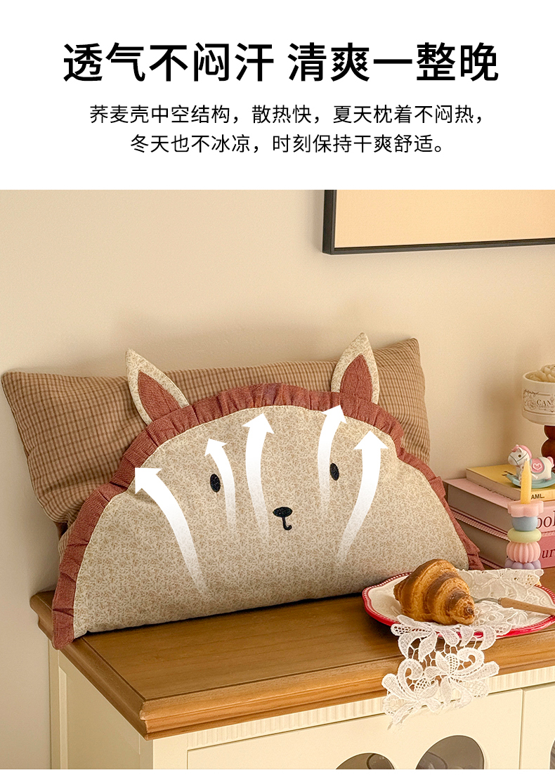 商品名称:蔻眠 云朵兔-全棉刺绣卡通荞麦护颈枕头儿童学生荞麦枕芯 云朵兔-驼小格