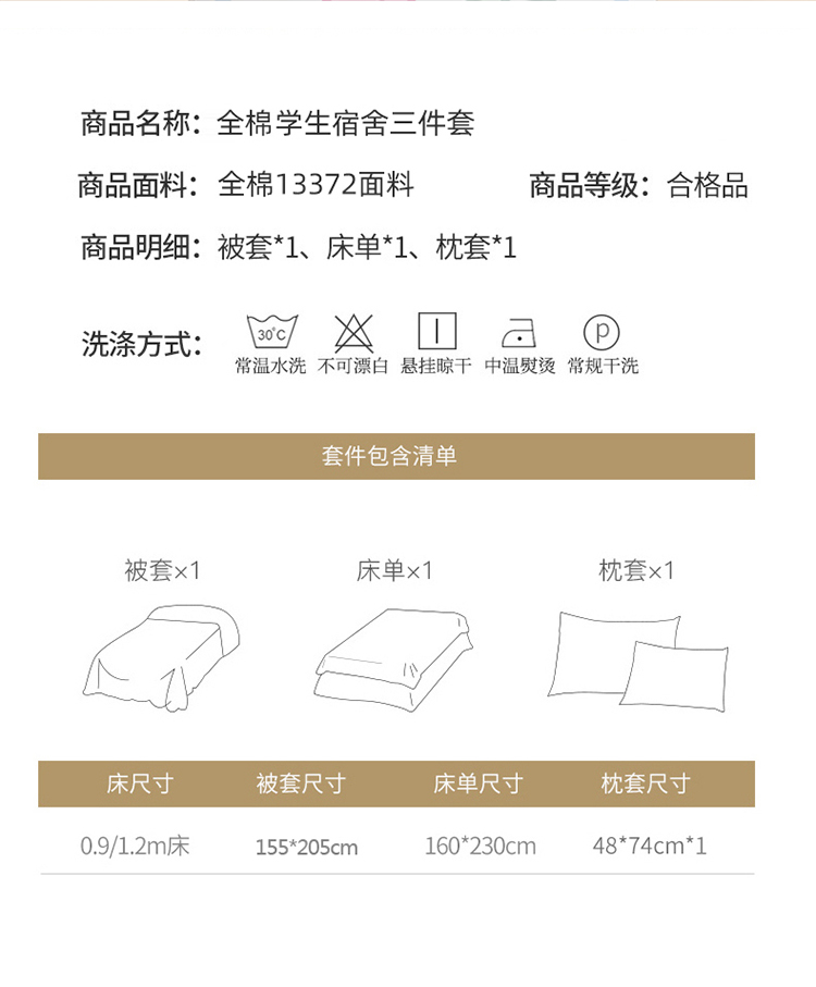0.9床(被套155x205)三件套