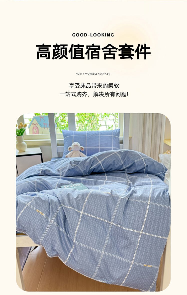 (总)【疆东】2026简约13372纯棉全棉学生三件套学生季宿舍上下铺全棉纯棉格子印花三件套件单品被套床单,学生时代,威尼斯,快时尚,爵士,摩登,雪松,西雅图,莫兰迪,格小猫,蓝调,幻影灰,克莱因