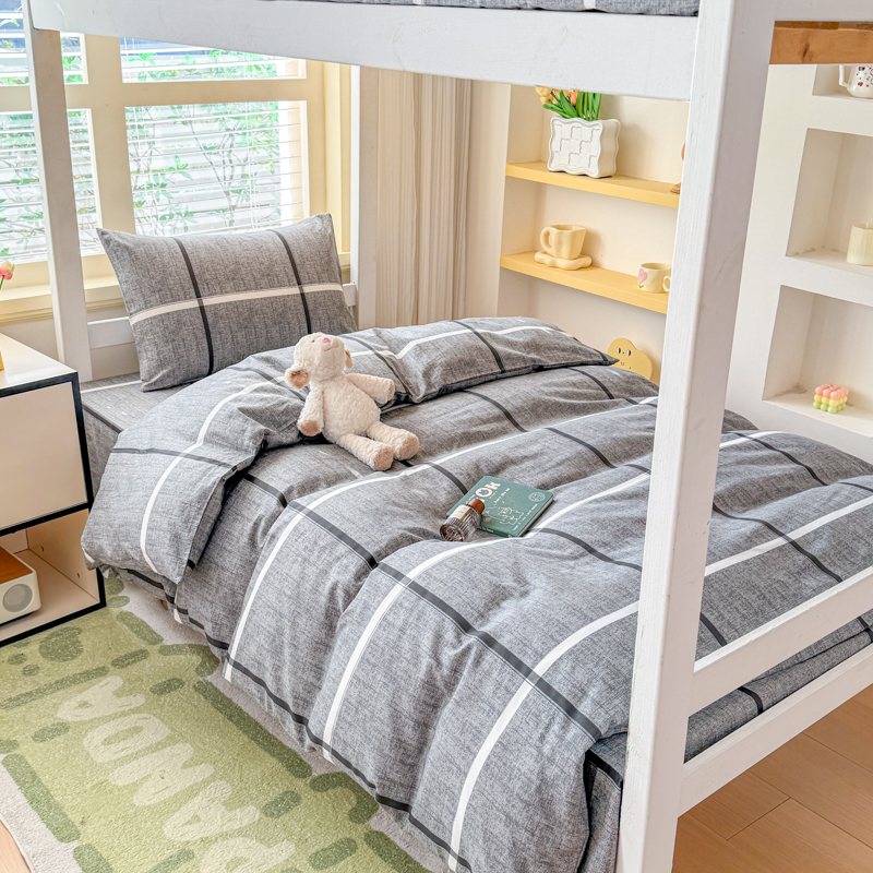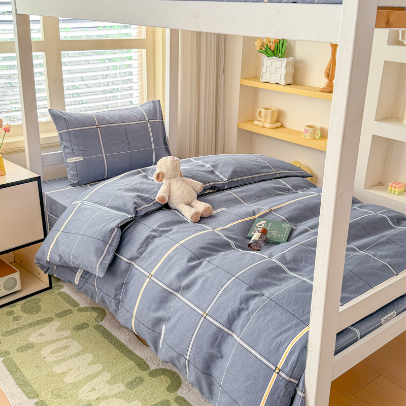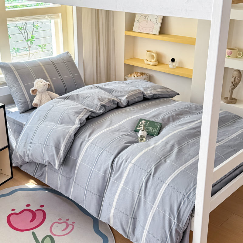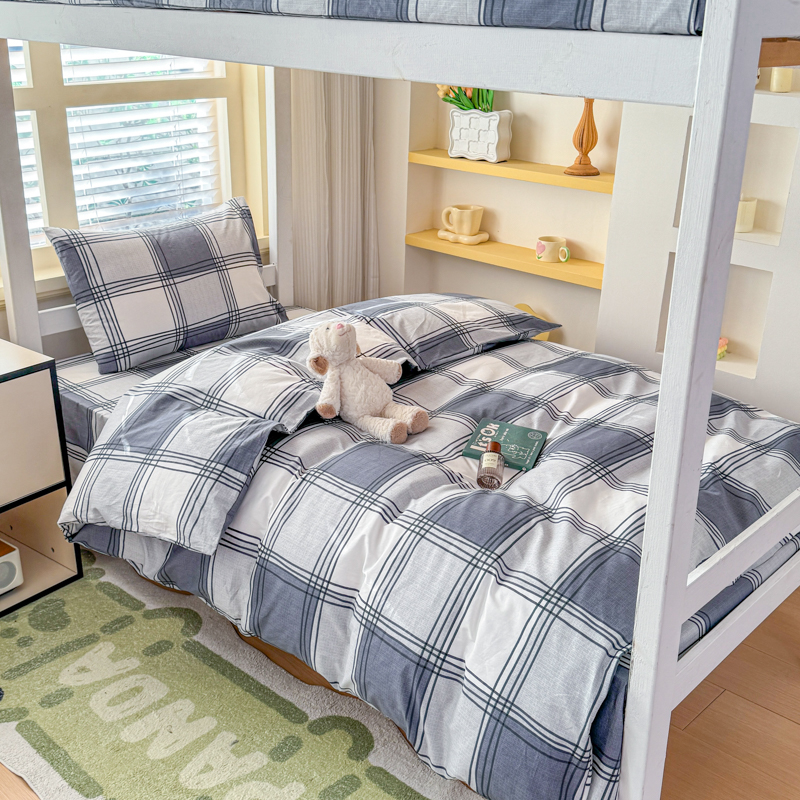【疆东】2026简约13372纯棉全棉学生三件套学生季宿舍上下铺全棉纯棉格子印花三件套件单品被套床单 雪松