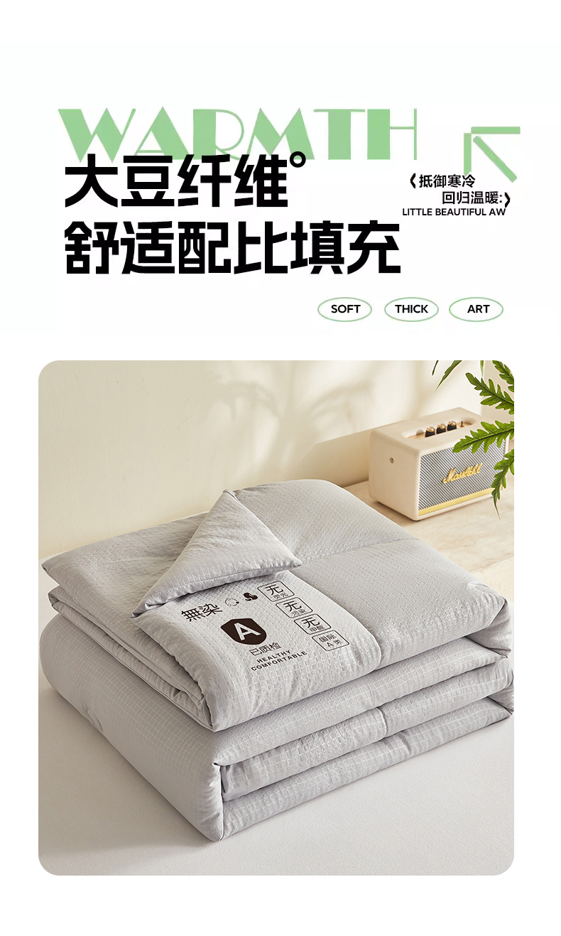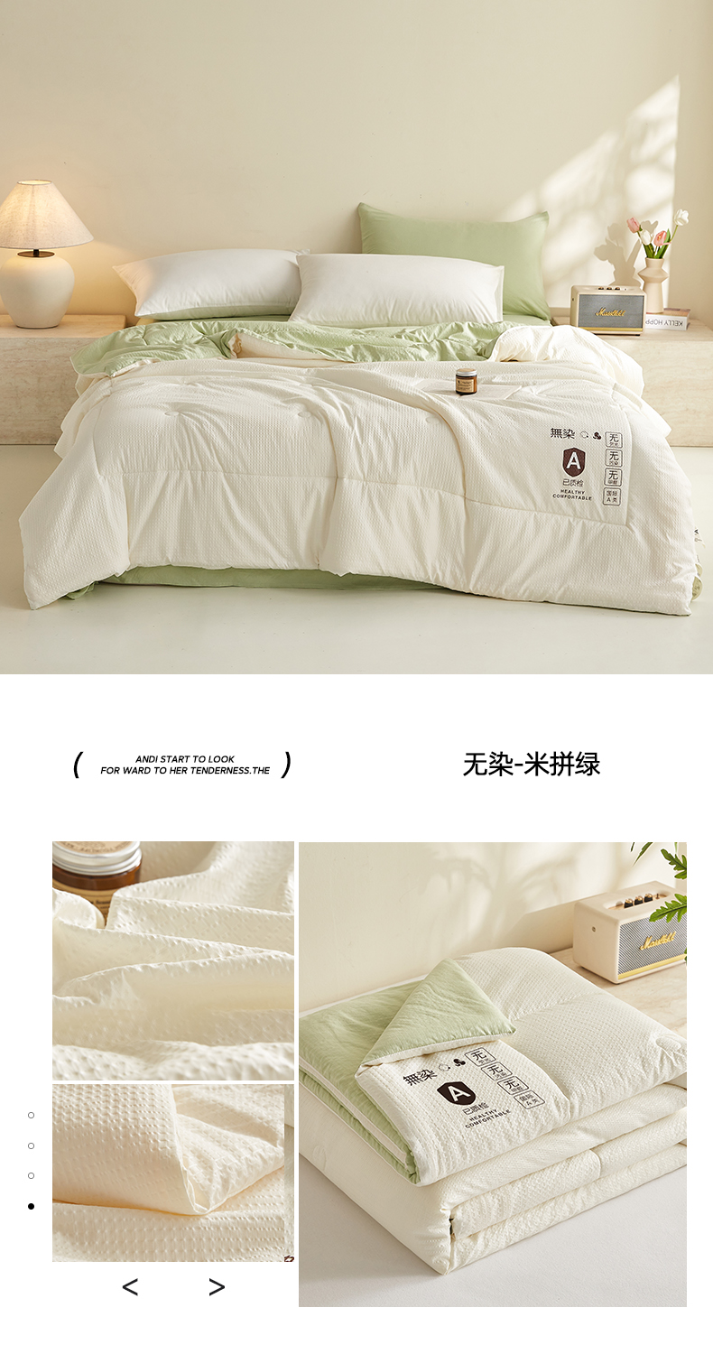 (总)帕芬鸟家纺 2025新款超柔水洗棉大豆被子被芯,米白拼绿,灰色,米白色,玉色,咖色