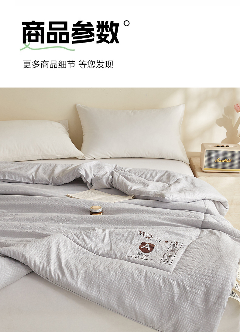 商品名称:帕芬鸟家纺 2026春夏新款A+无染大豆夏被夏凉被空调被 无染-灰